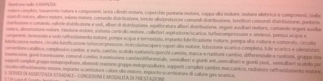 Nella garanzia è inclusa la solita assistenza stradale e tutto ciò che è indicato di seguito (estratto dal contratto):