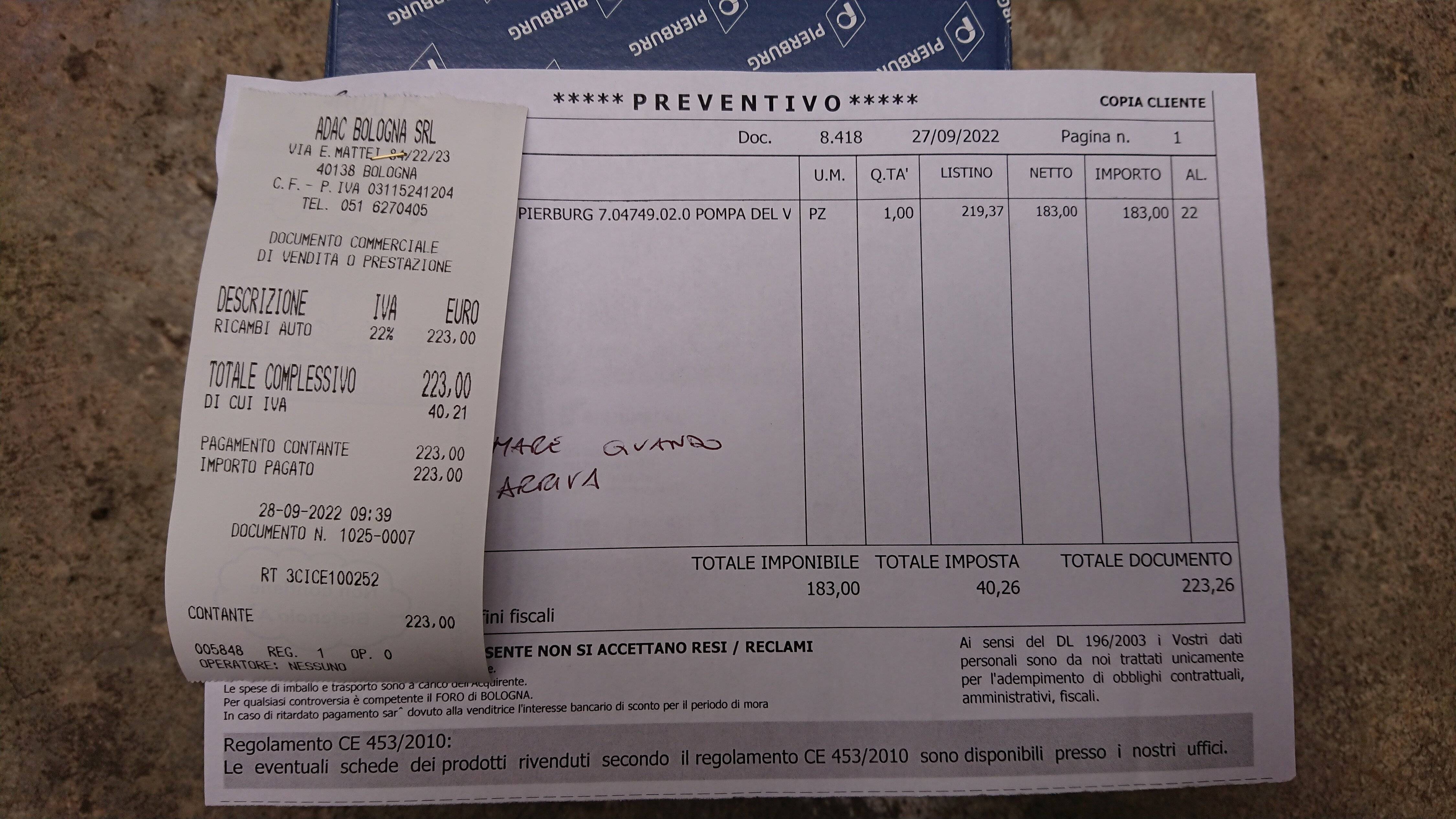 Buongiorno a te,Buon giorno vado a portare la macchina fra poco in officina poi vediamo cosa salta fuori. Si la pompa come dicevo lo aperta e da lì si è capito che non serviva di cambiare solo la guarnizione.