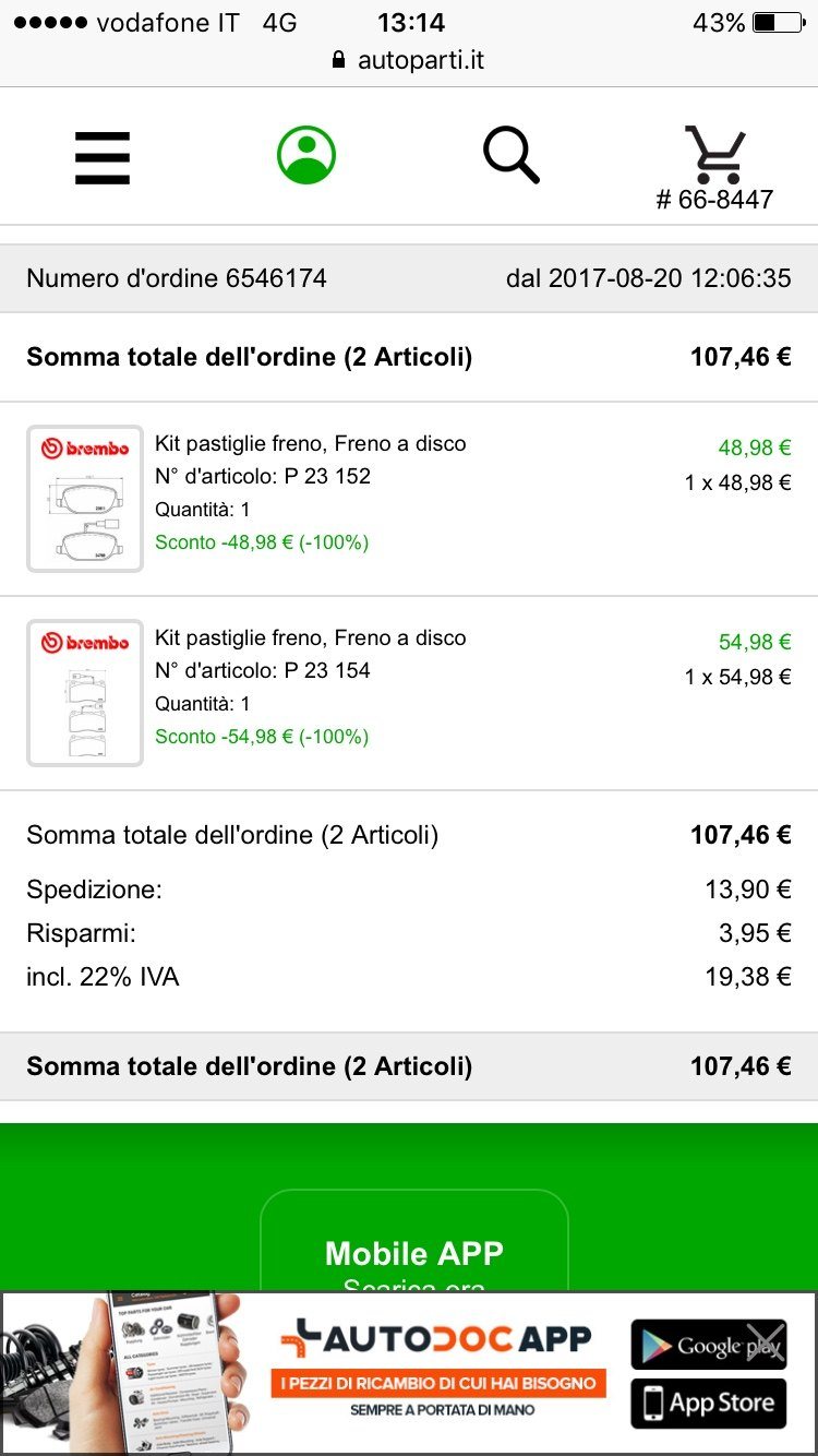 Certamente, basta chiedere. Parliamo dei codici delle pastiglie originali per un impianto frenante standard.