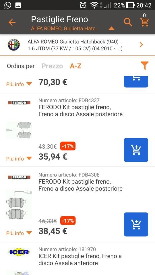 Un altra possibilità è misurare le pasticche, ce una certa diffetenzaAppunto, se ha chiesto qui glieli possiamo dare qui i codici, non lo rimbalziamo al magazzino alfa