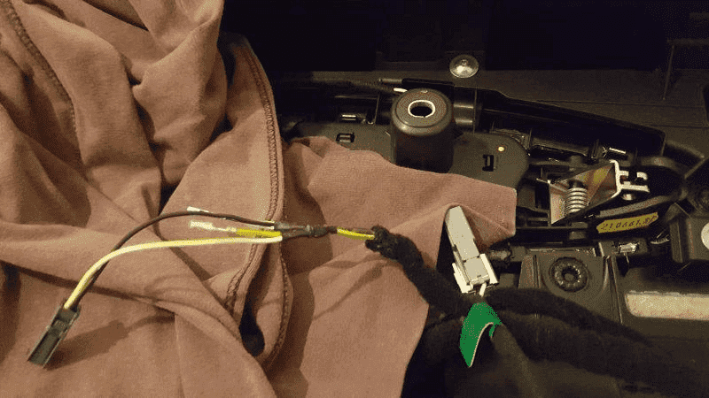 nastrare prima con nastro telato e poi con quello felpato antirumore, ed ecco il lavoro finito, il connettore nero è quello che era già presente, il grigio è quello aggiunto