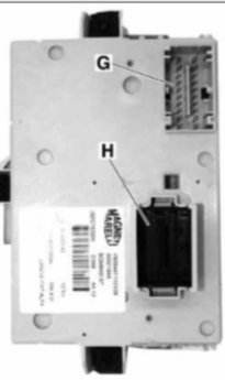 8. Con l'aiuto di un cacciavite a taglio allentiamo il dente posto in alto a sinistra per sbloccare la BCM dal telaio, fatto questo sfiliamo la BCM e scolleghiamo l'ultimo connettore posteriore rimasto (H)