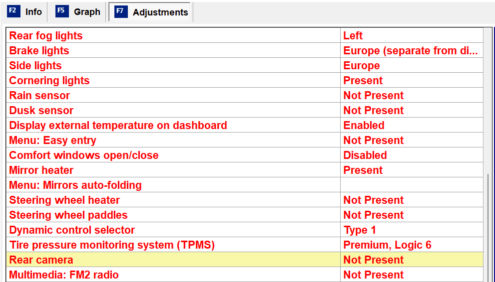 A volte serve anche dell'hardware: per esempio se hai solo i sensori di parcheggio sul paraurti posteriore, modificando un byte puoi attivare la configurazione anche per quelli anteriori, ma poi ti servirà sia la centralina dei sensori a 8 canali (4 dietro + 4 davanti) che i sensori sul paraurti anteriore. Se vuoi attivare il cruise control adattivo, servirà una pulsantiera, da montare sul volante, con l'apposito pulsante del cruise adattivo da montare al posto di quella che non ha il pulsante.