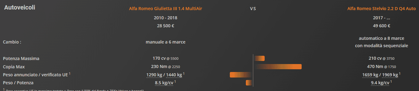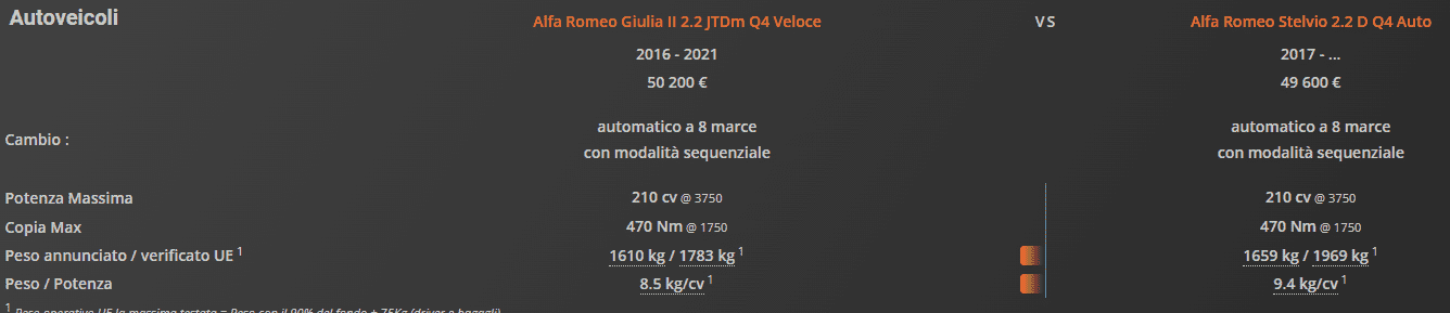 Paragoni un auto con 1.4 170 cv (coppia 230nm) con una 2.2 con 210 cv (coppia 470 nm) e la stelvio riesce pure a perdere ...ottimo confronto .... complimenti !!