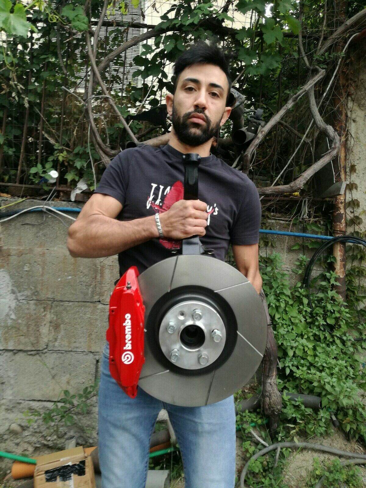 Salve.Mi presento,sono Dario,il venditore di eBay sono io,inoltre quello in foto è un amico,a cui ho fatto l'impianto frenante,aggiungo che ci sono una marea di inesattezze ,riguardanti l'impianto in questione, dato che il montante non è Gta,ma bensì delle normali 147/Gt/156 adattato con apposite staffe artigianali in acciaio C45 ricavate dal pieno con macchine al controllo numerico,le pinze sono derivazione 159 2.4/Brera/Giulietta Qv!Poi sfido chiunque a trovare le pinze nuove a 450€, già per prenderle ricondizionate da riverniciare vogliono 600€...grazie per l'attenzione.