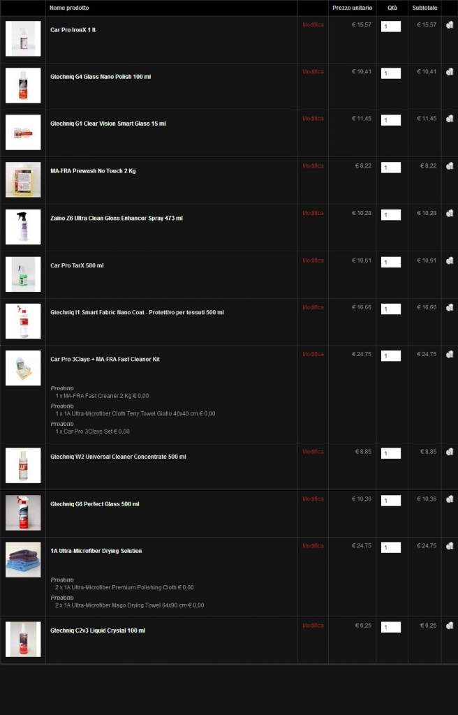 Ho conosciuto gente che ha preso la migliore cera/sigillante senza preoccuparsi del panno di pari livello o di decontaminare.Io un pò alla volta ho raccolto vari pezzi (panni,spugne, cere etc etc...) non spendendo nemmeno cifre esagerate.