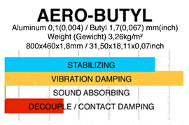 AERO-Butyl : Butyl and aluminum constrained layer damping material. Designed for damping metal or plastics and reducing unwanted structural vibration, rattles and sound from inside or outside of your car.