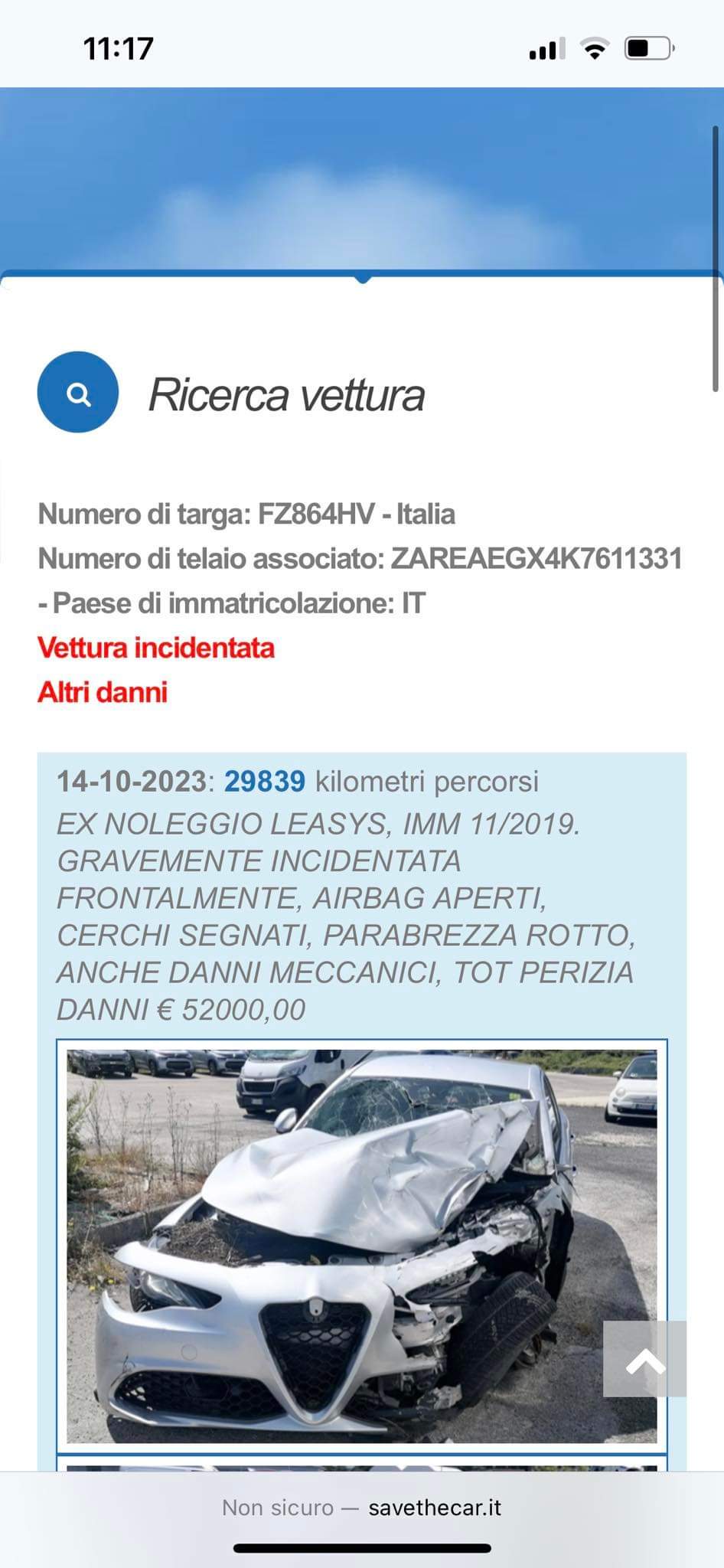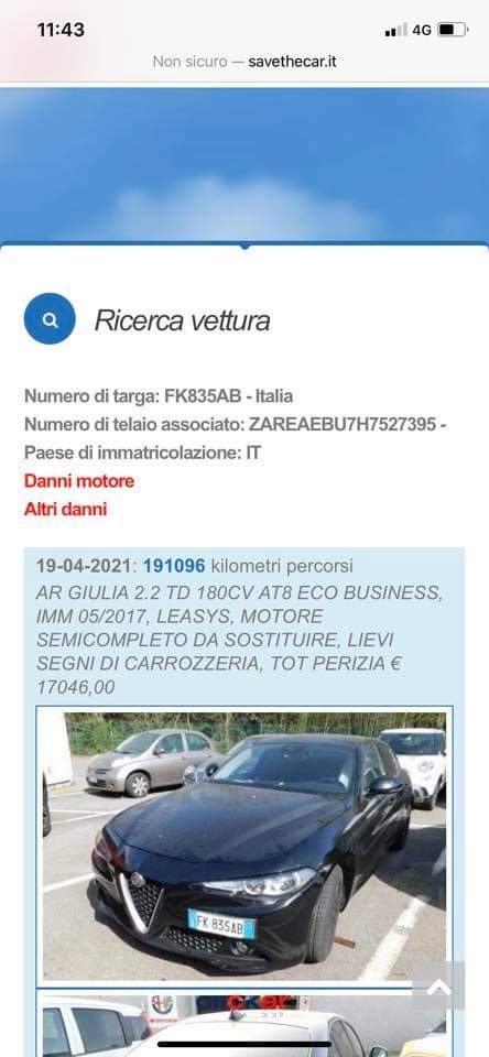 Ciao riesci a vedere la mia Giulia usata? FJ306XH grazieE' che Una tira l'altra!! Va bhe dai l'ultima!! Adesso ne ho anche per Stelvio!! Vado ad aprire la discussione di la!!