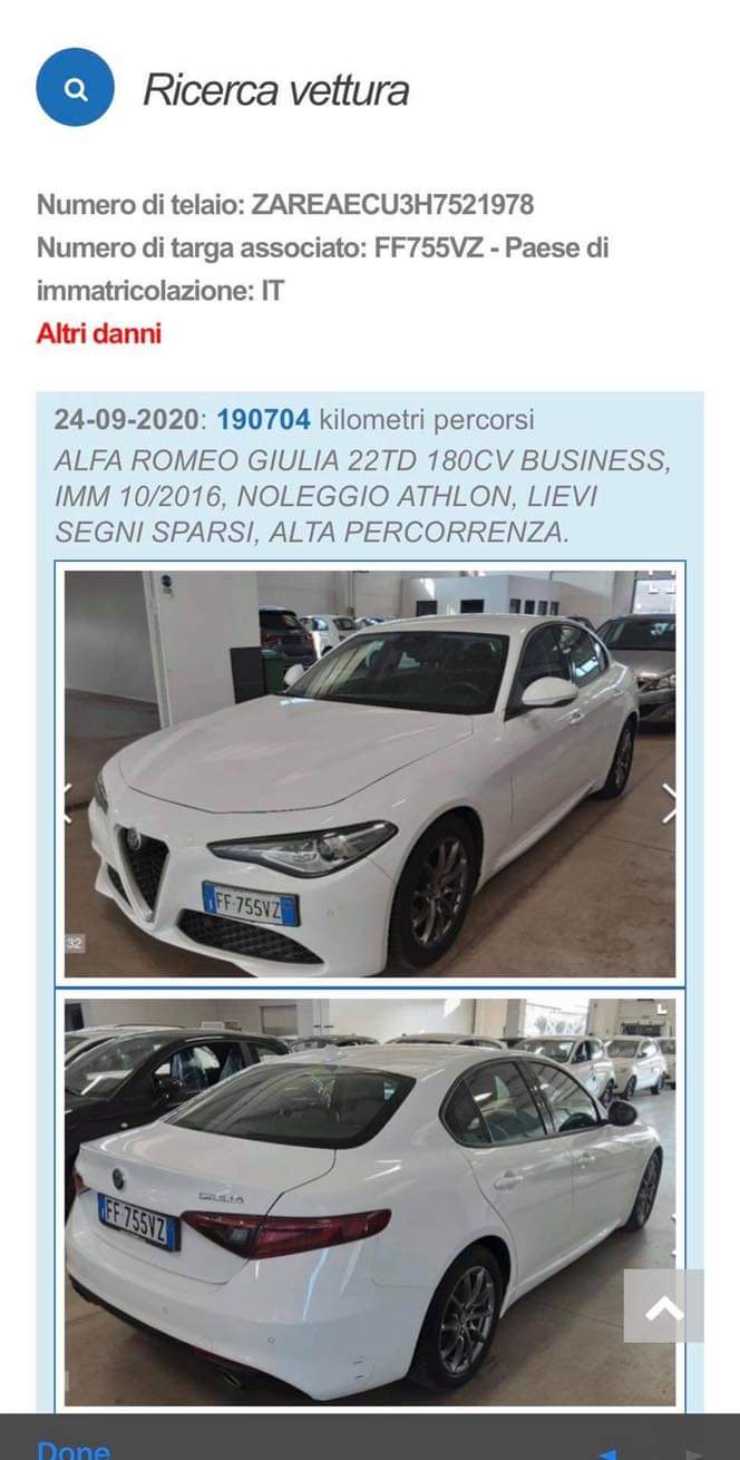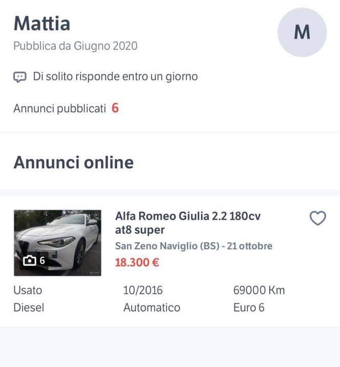 È chiaro che qui si parla di Giulia. Ma succedono su tutte le Marche di auto tedesche, francesi, italiane ecc...Stavo leggendo un po' il Post in merito alla questione delle Giulia"schilometrate" premesso che questa prassi purtroppo viene fatta anche e soprattutto su modelli tedeschi e via dicendo, però la mia curiosità è un'altra, come mai ti stai interessando così tanto?