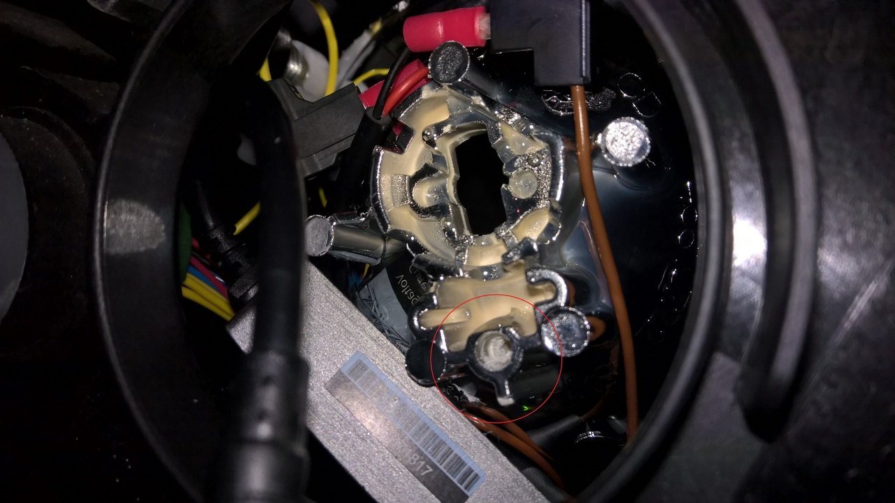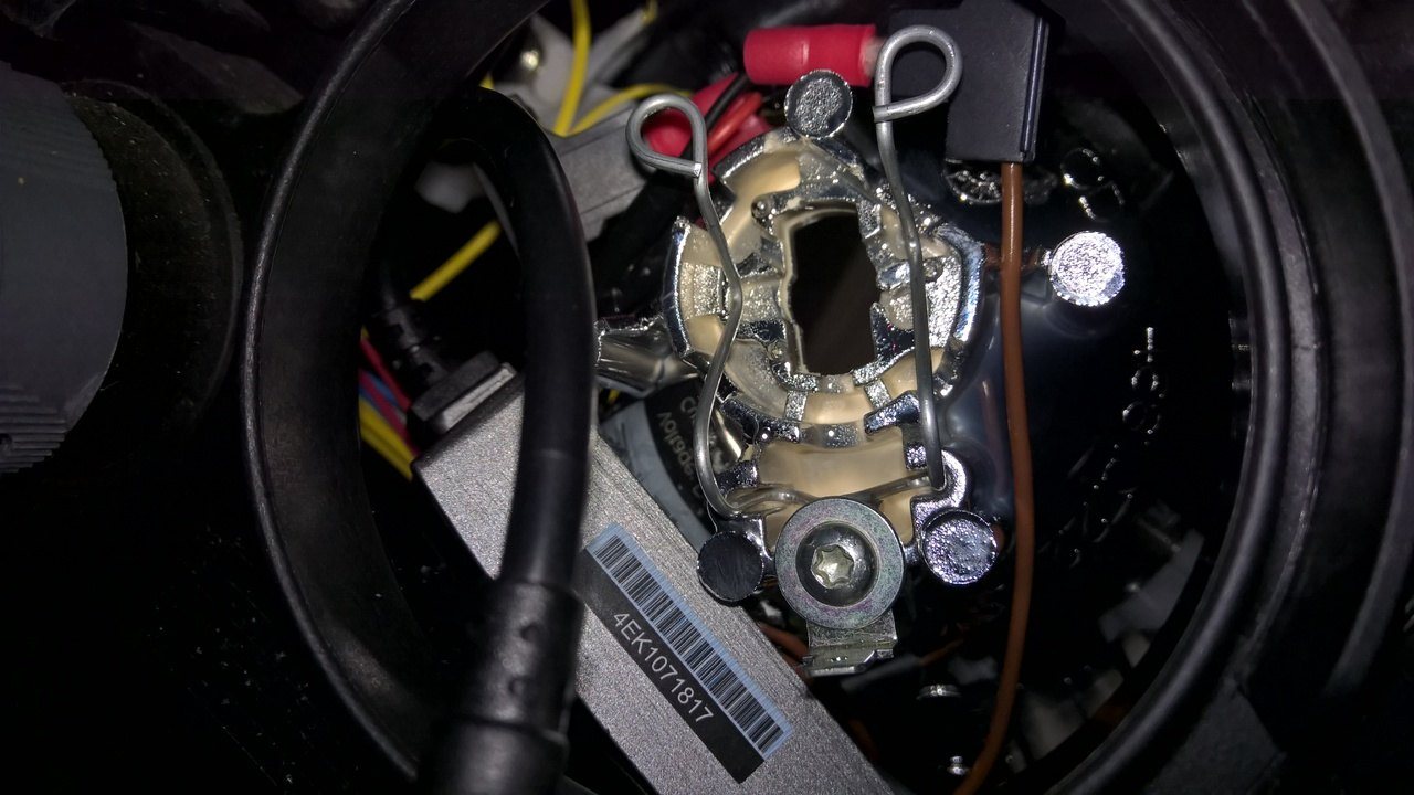 Qui per inserire la scatolina del driver dei LED direttamente all'interno del fanale ho rimosso la vite che tratteneva la linguetta per l'attacco di uno dei due poli delle H1 alogene.