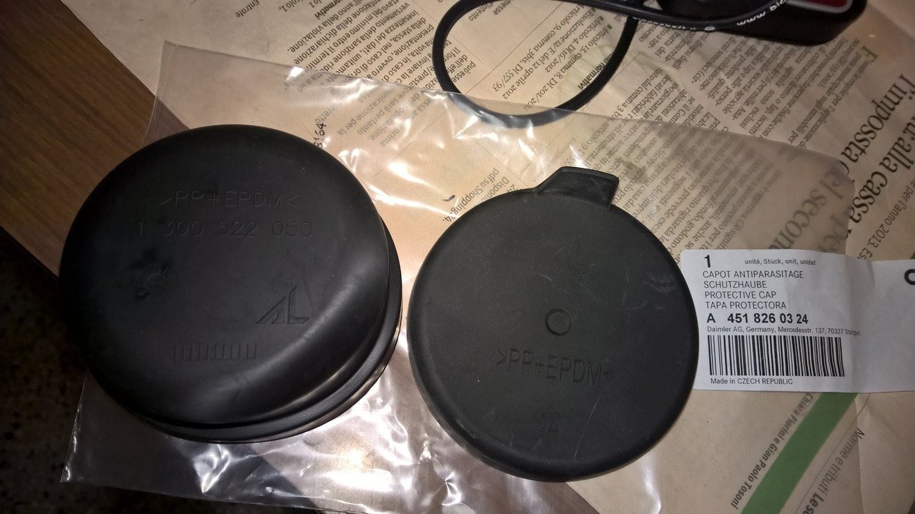 A sinsistra il "tappo" della SMART ed a destra ovviamente quello originale piatto ALFA