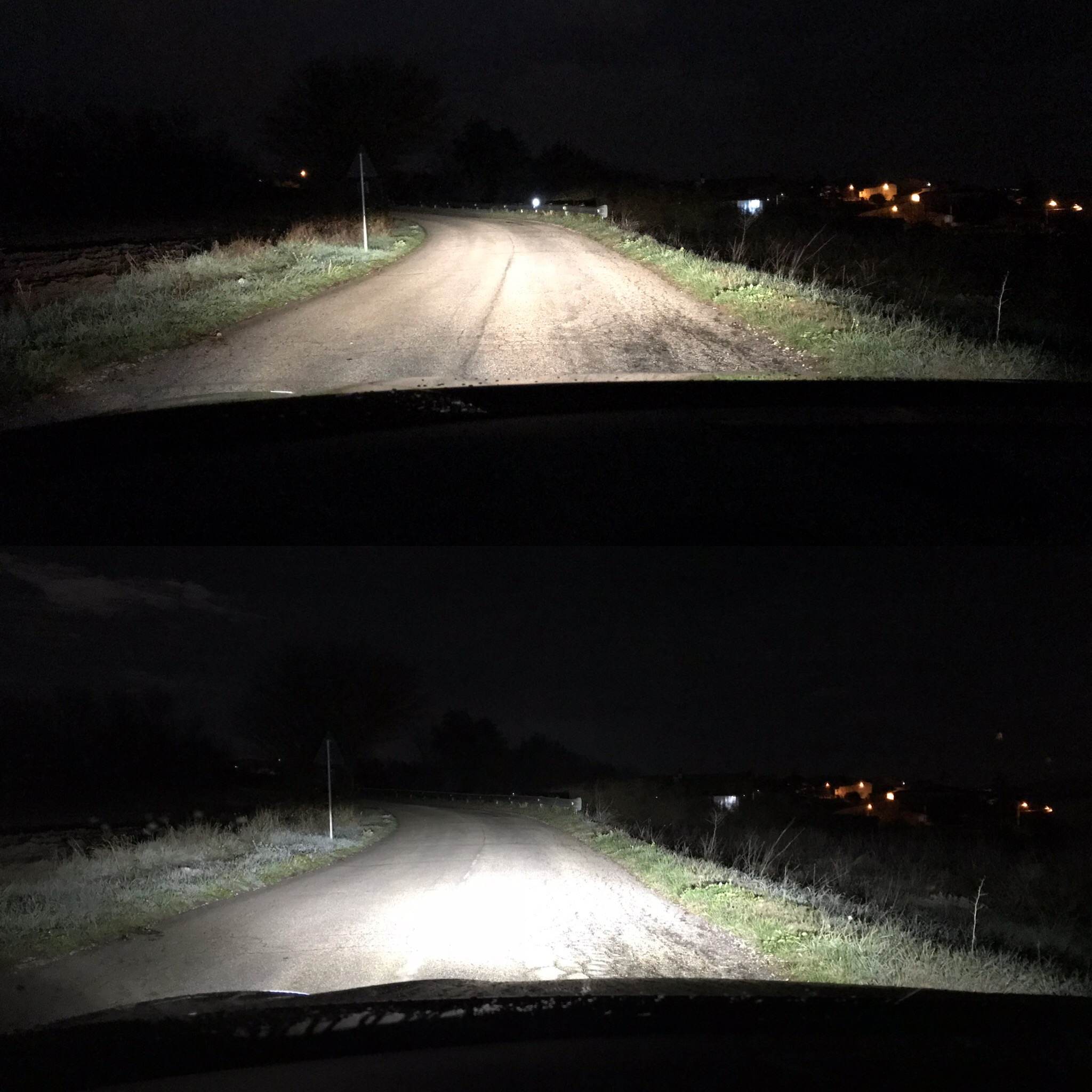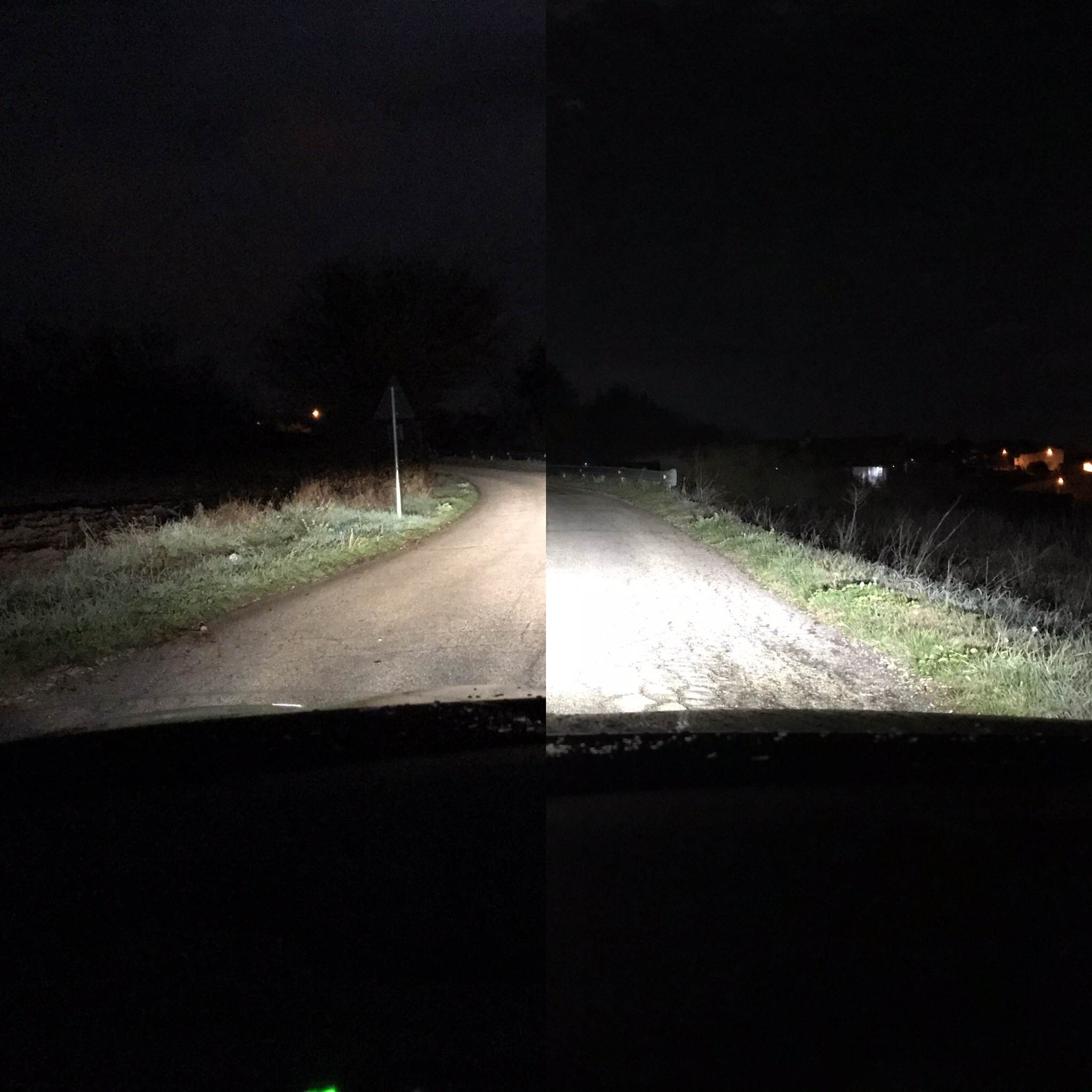 Visto ora le foto, hai verificato che entrambe le lampade LED siano correttamente orientate? Lo vedi tranquillamente contro il muro, lo so che sembra stupida come domanda ma noto che con le alogene hai la centratura del fascio corretta al centro, cosa che con i LED non accade più. Se guardi la mia foto, vero, si capisce poco, ma il fascio è perfettamente centrato a terra.