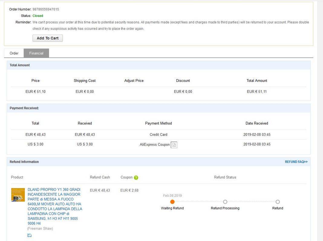 Non capisco è la prima volta che mi succede una cosa del genere su Aliexpress... Premetto che l'account è nuovo appena creato per prendere il buono di $3... Ma la carta di credito è buona!
