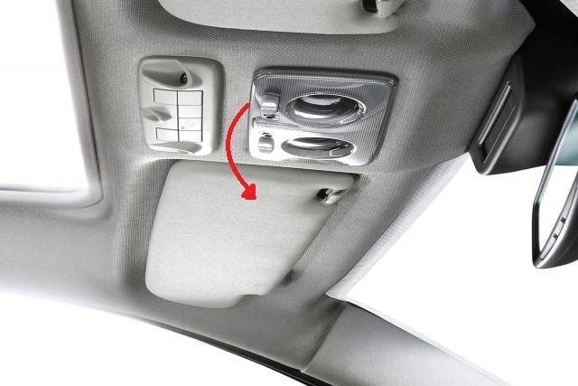 La plafoniera anteriore viene via tirando giù la stessa dal profilo più lungo (dalla parte dei pulsanti, opposta al parabrezza) verso il basso. Le lampadine sono protette da uno sportellino che si apre da sx verso dx.