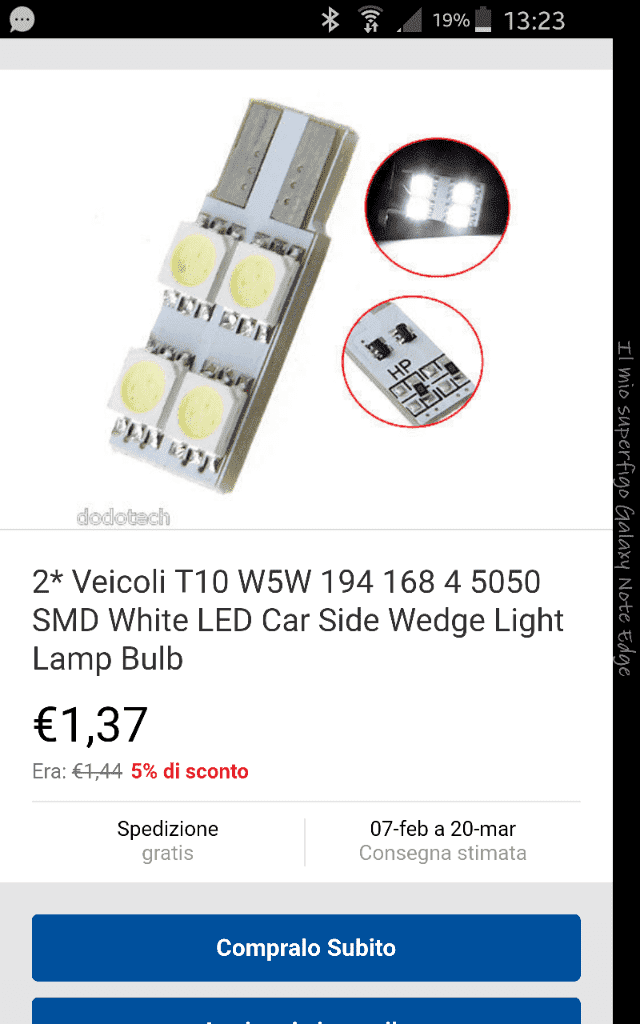 Usare lampade con i led su tutti i lati è inutile, io su targa, portiere e cassetto portaoggetti ho queste monofacciali e fanno una bella luce bianca