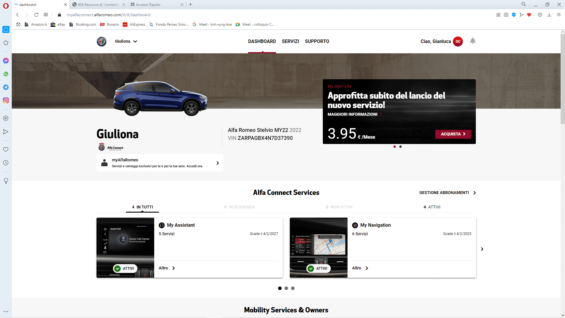 Situazione peggiorata ora non è possibile più accedere ad My Alfa (vedi messaggio di errore)