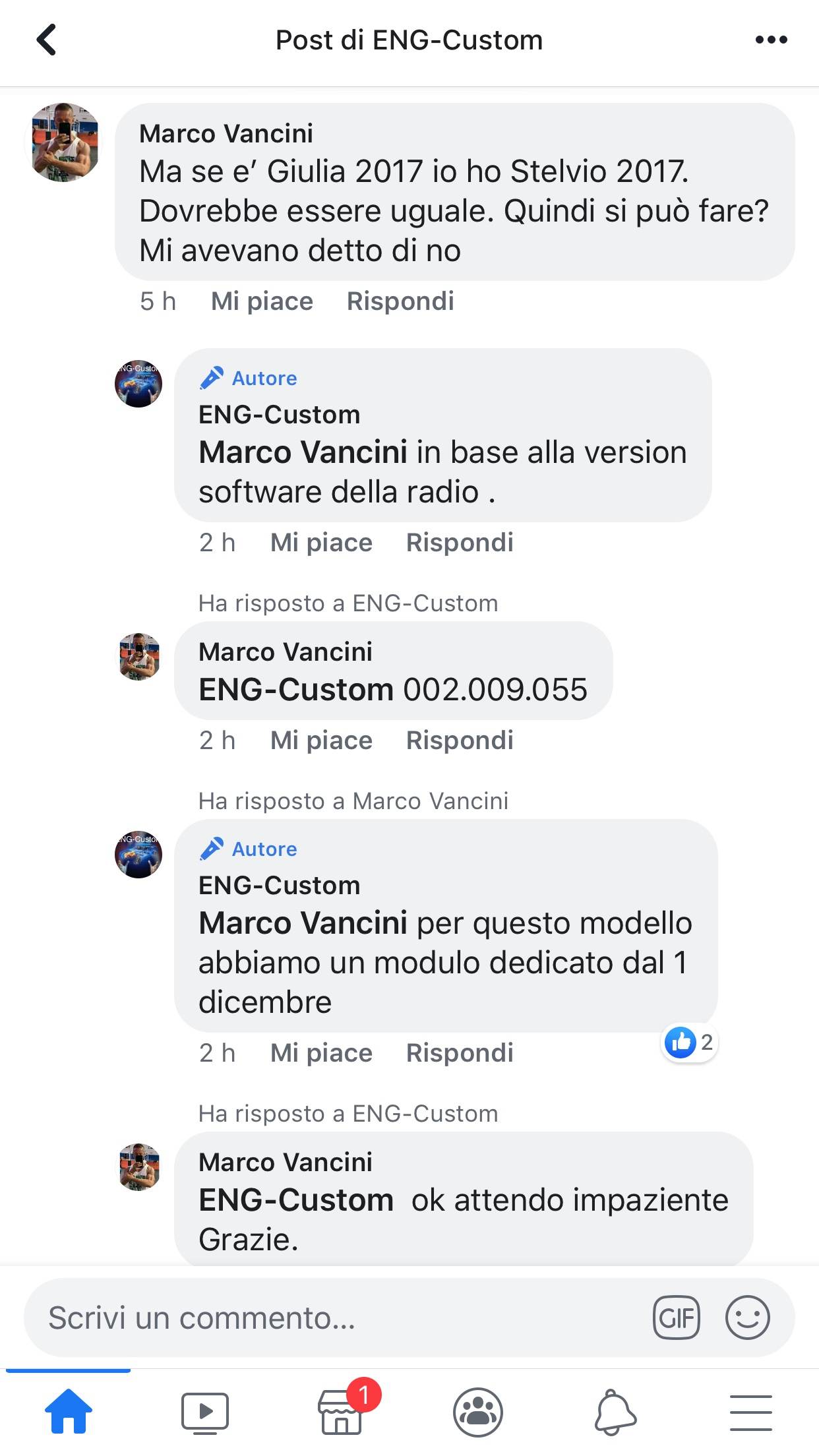 Prima di fare l'intervento, il ragazzo di Eng-Custom mi ha confermato che per le Giulia/Stelvio da una certa data di produzione in poi è possibile eseguire l'attivazione (come nel mio caso, la mia è stat prodotta a Gennaio 2018), mentre per tutte le altre (ma comunque anche per quelle dove potenzialmente si può sbloccarlo) hanno in preparazione questo kit, che tra l'altro fungerà anche in wireless.