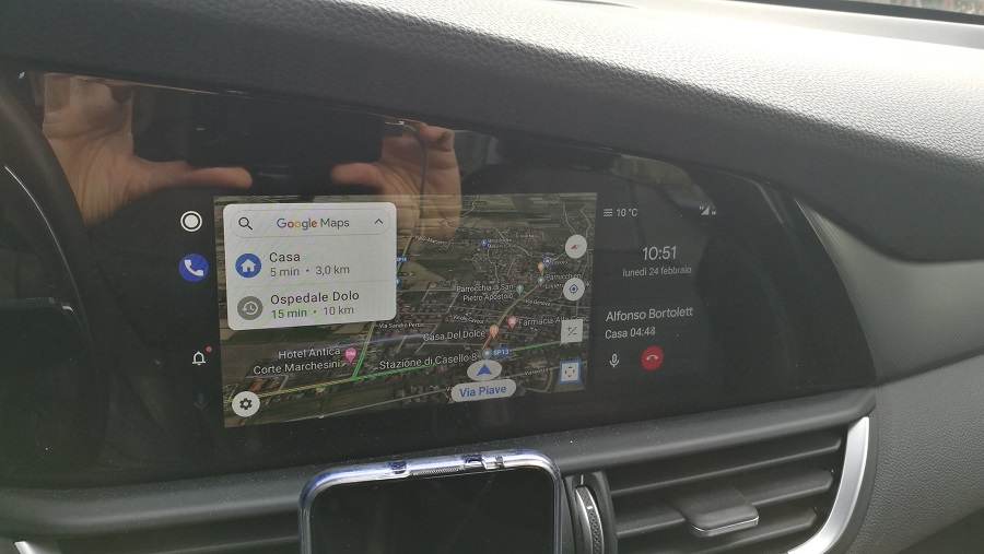 Android Auto con preferenze di percorso e telefonata attiva sul display ma utilizzando il bluetoot della vettura e microfono giulia (ce n'è comunque uno ma serve solo per i comandi google)