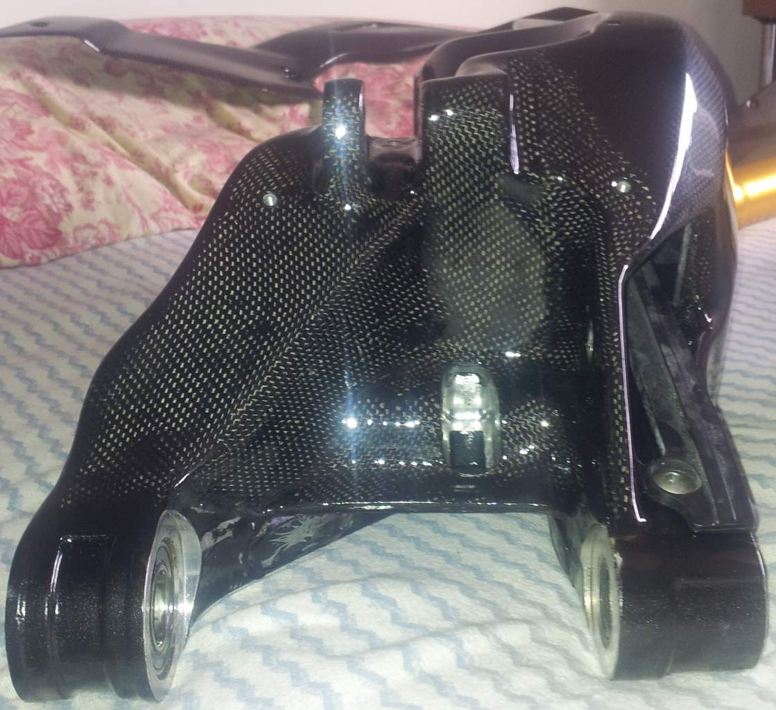 forcellone originale interamente ricoperto in carbonio e serbatoio rifatto totalmente in carbonio oltre tutto il resto della moto dove ho fatto fare in carbonio tutto il fattibile