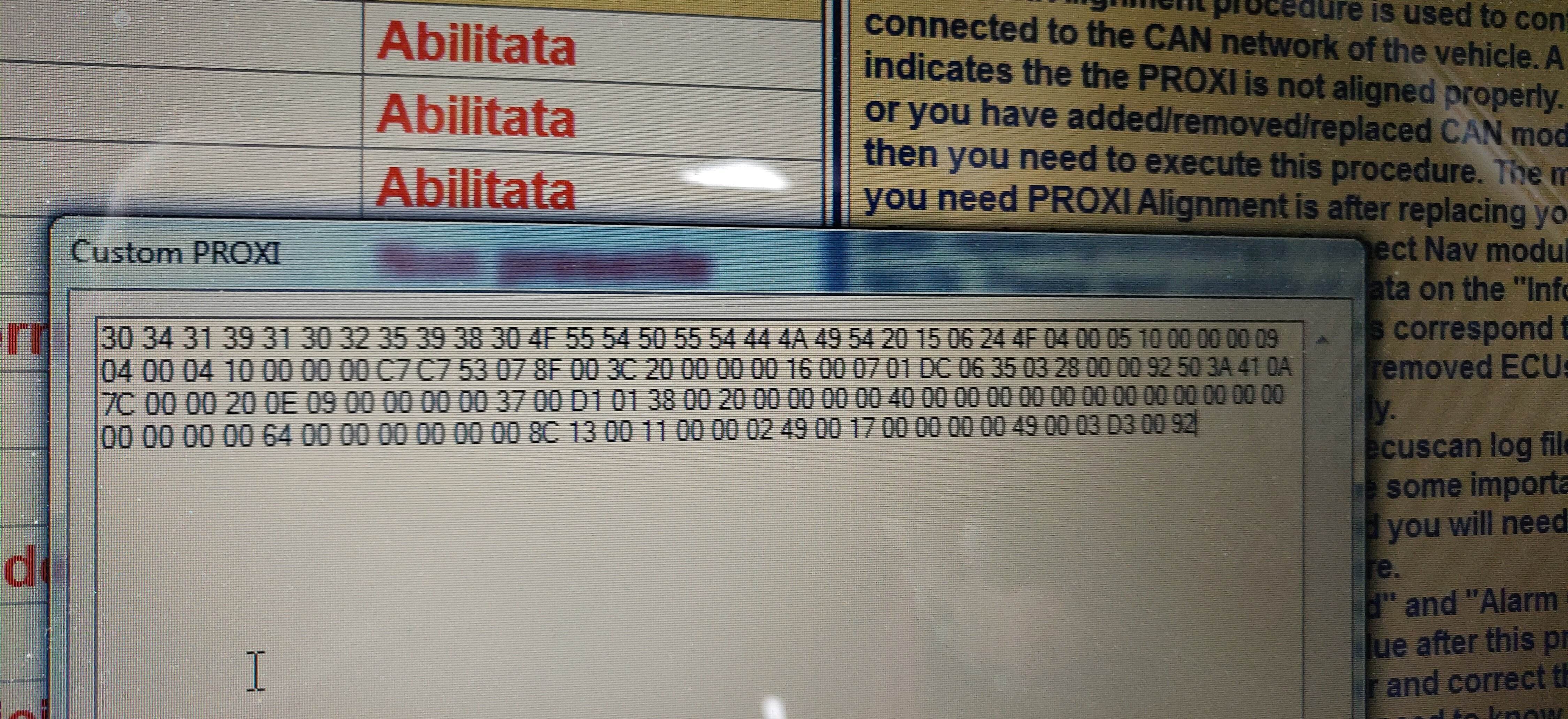 Il Custom Proxi dalle 2014 in poi estrae 133 bit mentre la tua foto ne ha un centinaio quindi deduco che è un body prima versione e quindi non ci puoi mettere sensori anteriori Uconnect e non so cos’altro.Non sapevo, sto facendo un favore ad un amico, però la Giulietta è una MY 2014.