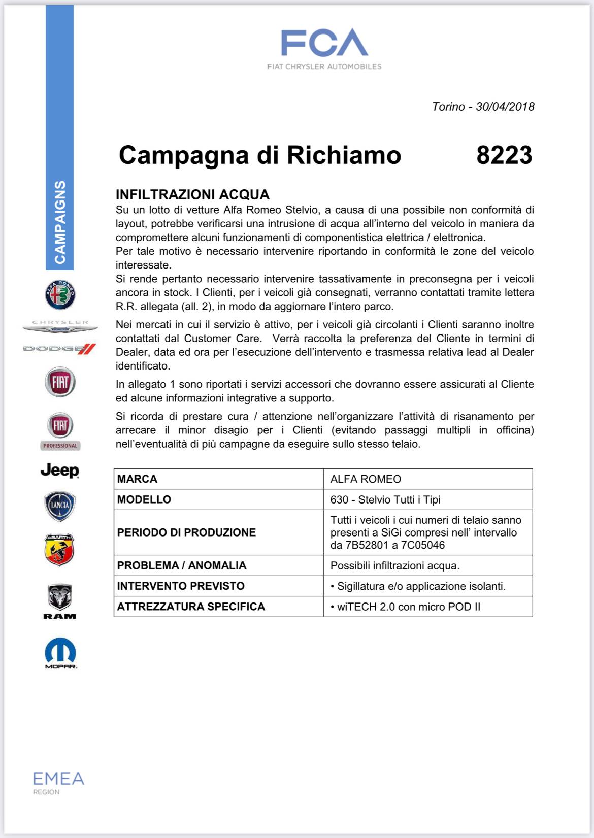 Ad ogni modo sono cose che dovrebbero essere risolte al più tardi con la produzione Maggio 2018…. Per il body computer allagato di che anni parliamo?