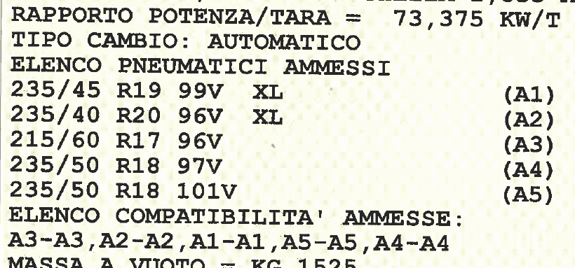Hanno aggiunto un 235/50/18 101V rispetto agli standard