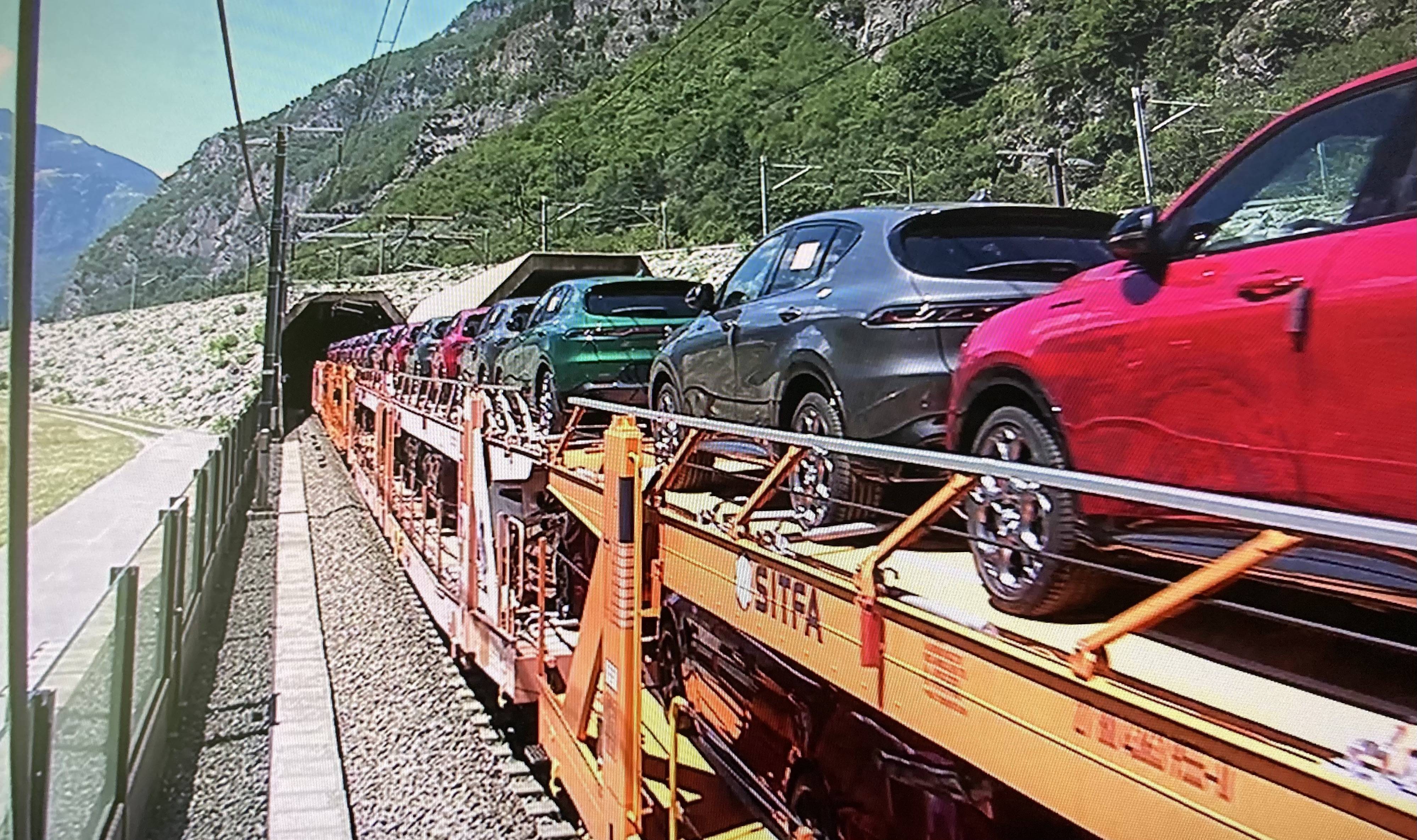 Treno carico di Tonale entra nella galleria ferroviaria di base del Gottardo