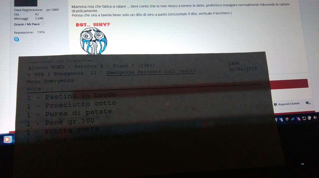 Mamma mia che fatica a calare ....tieni conto che io non riesco a tenere le diete, preferisco mangiare normalmente riducendo le razioni drasticamente.
