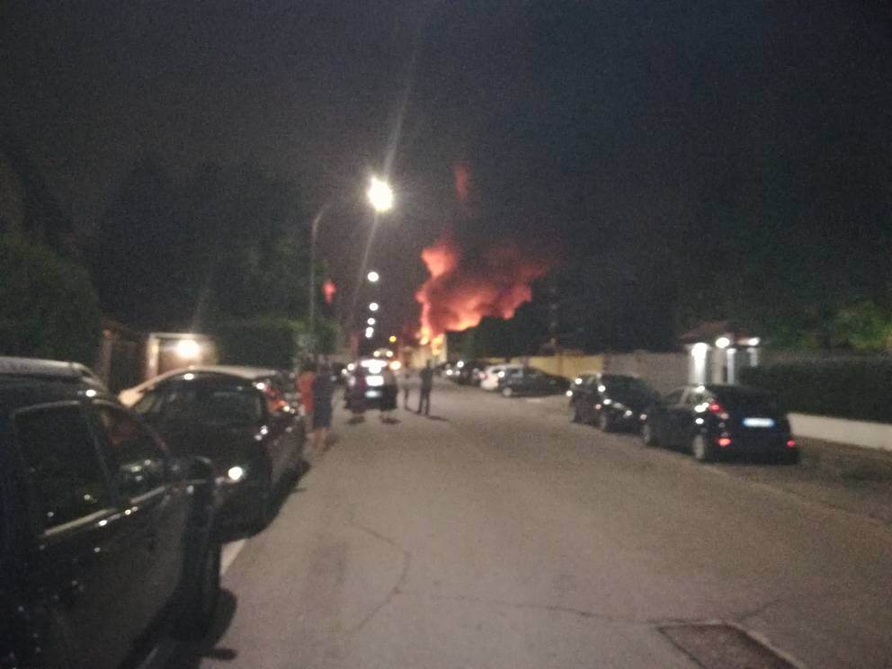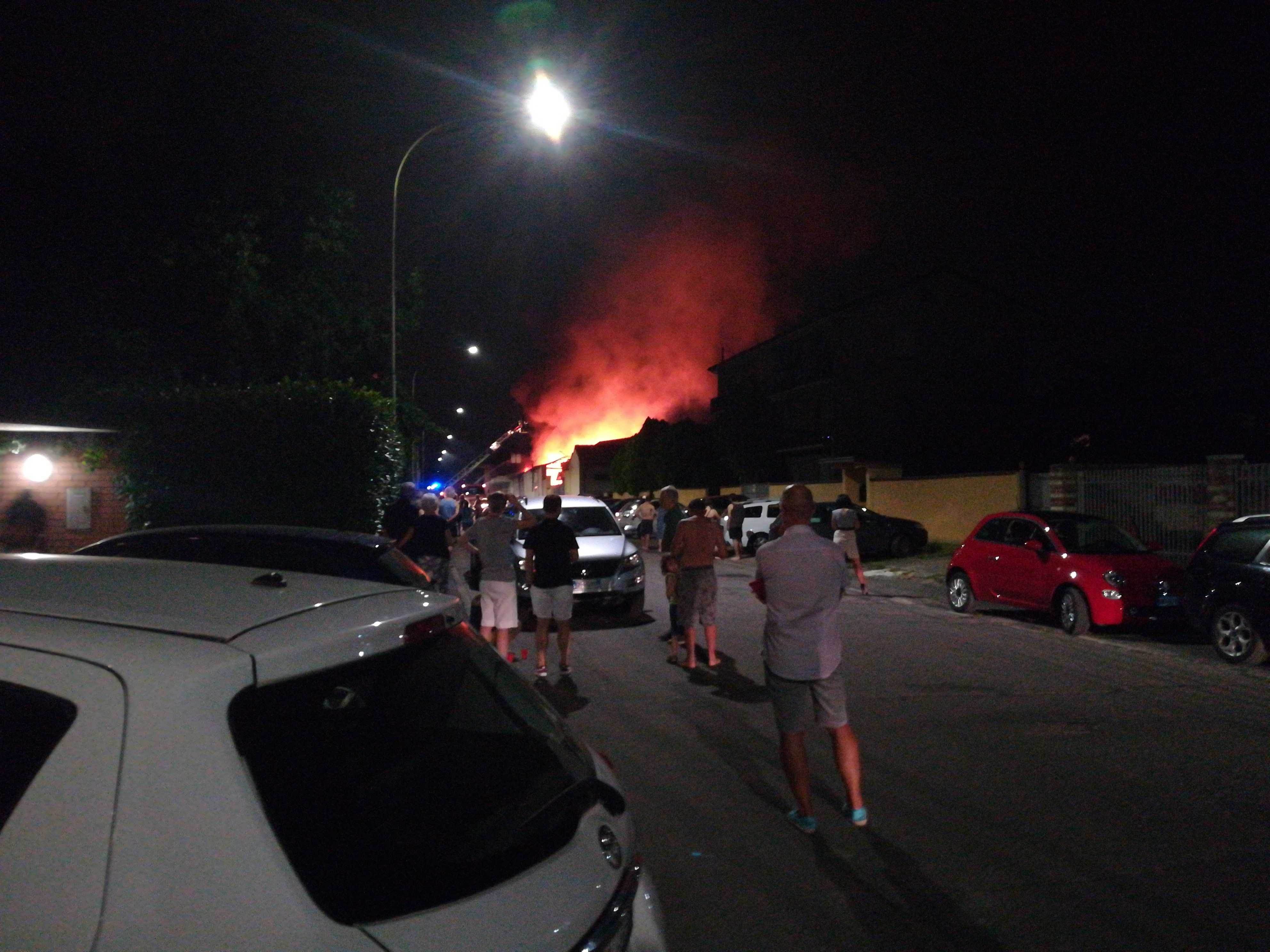 Fortuna, almeno per me, che il vento tira dall'altra parte, è già un po' che ci lottano ma le fiamme non calano, è già crollato il tetto del capannone