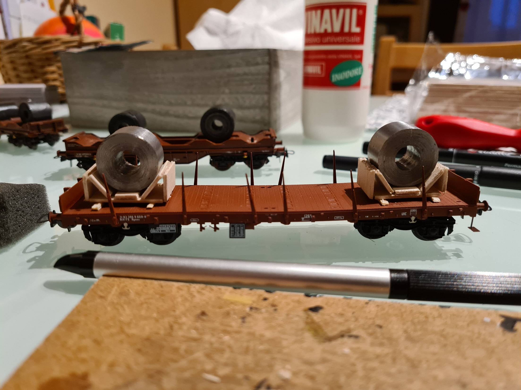 Oggi proseguo con il treno dei prodotti siderurgici, ho fatto queste due "selle" porta coils in balsa da 1mm.