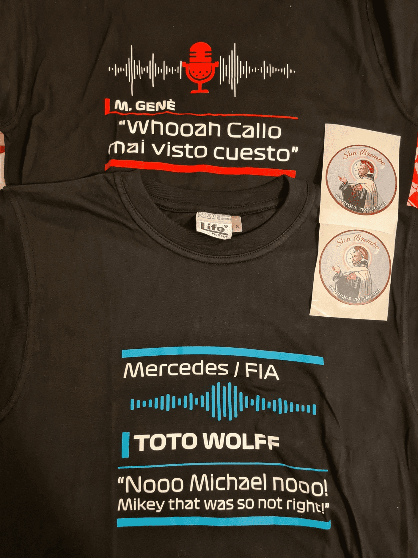 Due magliette davvero simpatiche per chi segue la F1 come me