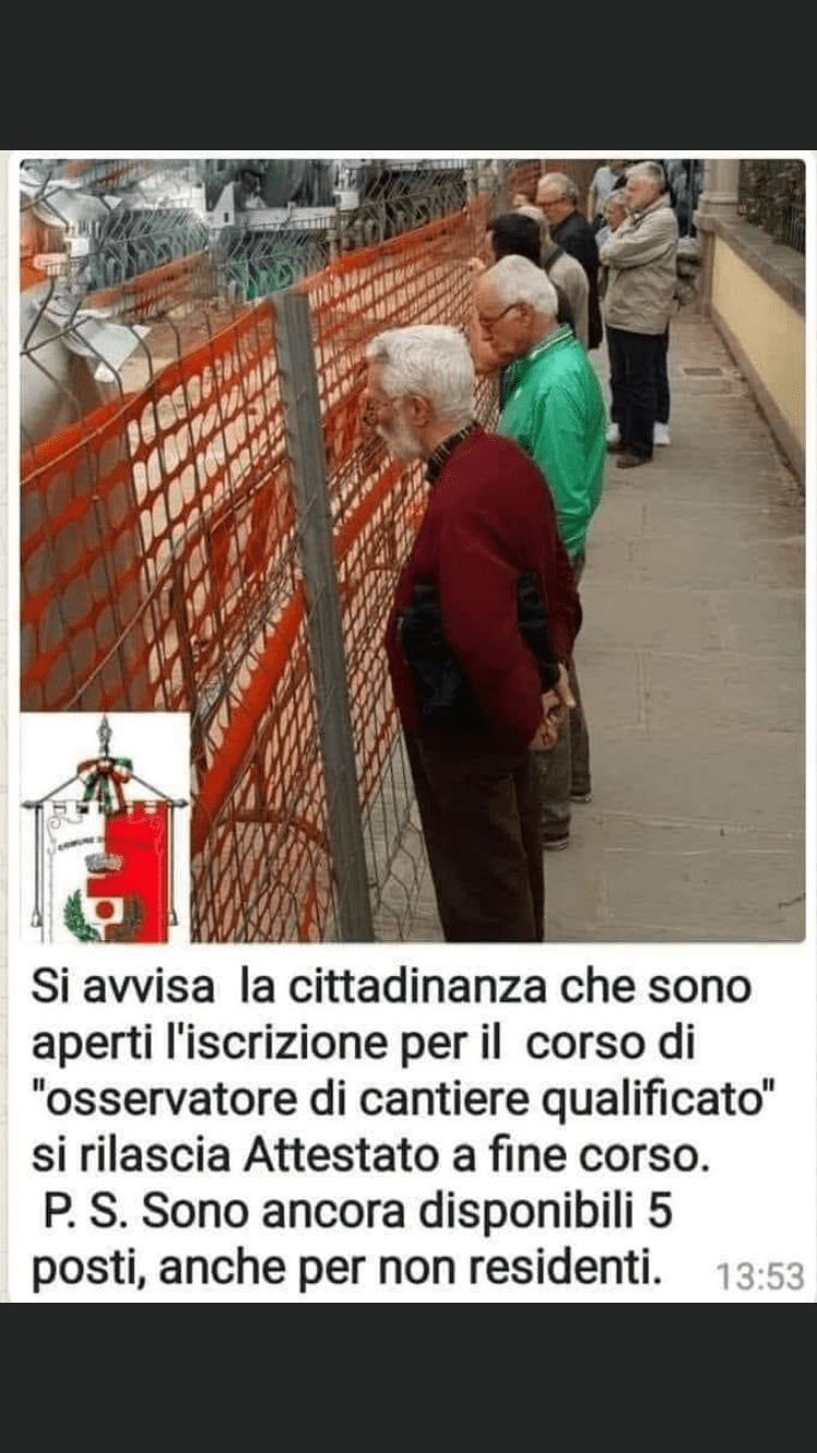 Anche dalla borsetta che tiene sotto braccio, all'interno ci sono i documenti del cantiereDalla foto si nota chiaramente che le persone raffigurate non sono qualificate ad eccezione del signore in primo piano che probabilmente è un istruttore, si deduce da come tiene correttamente le braccia posizionate dietro alla schiena....![]()