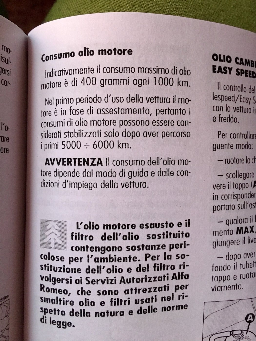 Tornando al tuo discorso ti consiglio di usare l'olio previsto per il tuo motore ovvero il Selenia 20K for Alfa Romeo e visto che utilizzi l'auto a gas, di anticipare i tagliandi a 10 o massimo 15 mila chilometri; con questo olio verifica i consumi.