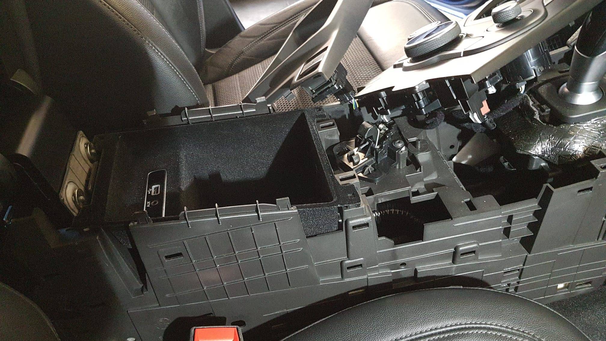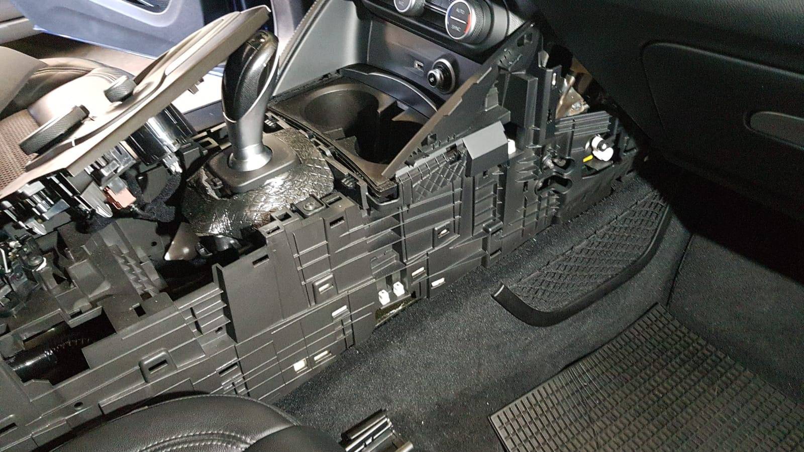 Per installare le luci che illuminano i portabicchieri deve essere smontato completamente il tunnel che ha un sistema di viti di fissaggio diverse rispetto a quello della Giulia.