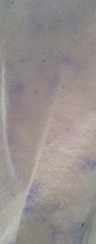 Ecco la foto del panno dopo il procedimento, è pieno di inchiostro, ma non ho ancora finito perchè tamponando continua a uscire inchiostro.