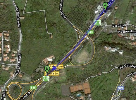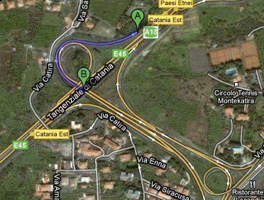tornate indietro per riprendere la tangenziale direzioni caselli come se dovreste tornare a Messina e prendete l'uscita "Paesi Etnei"