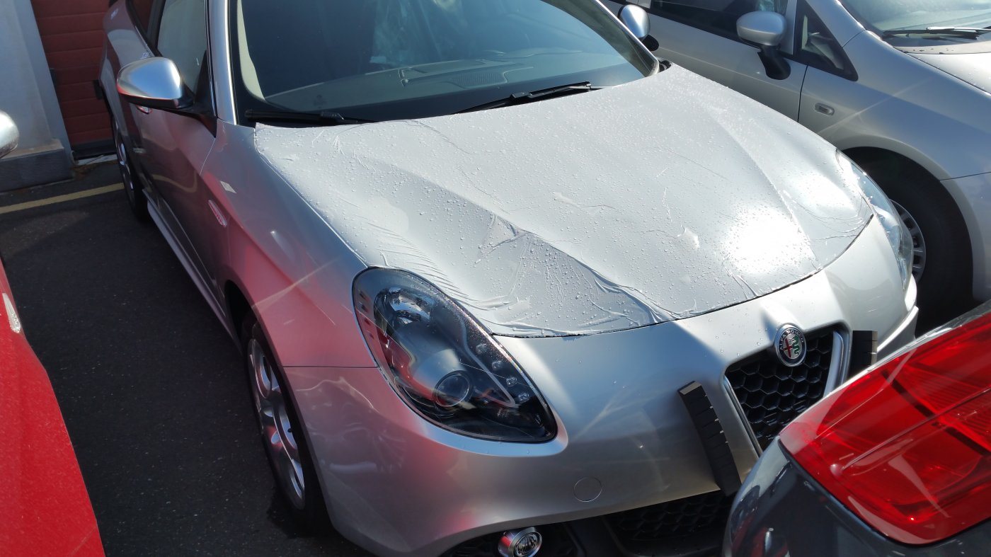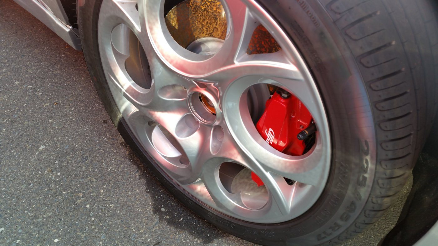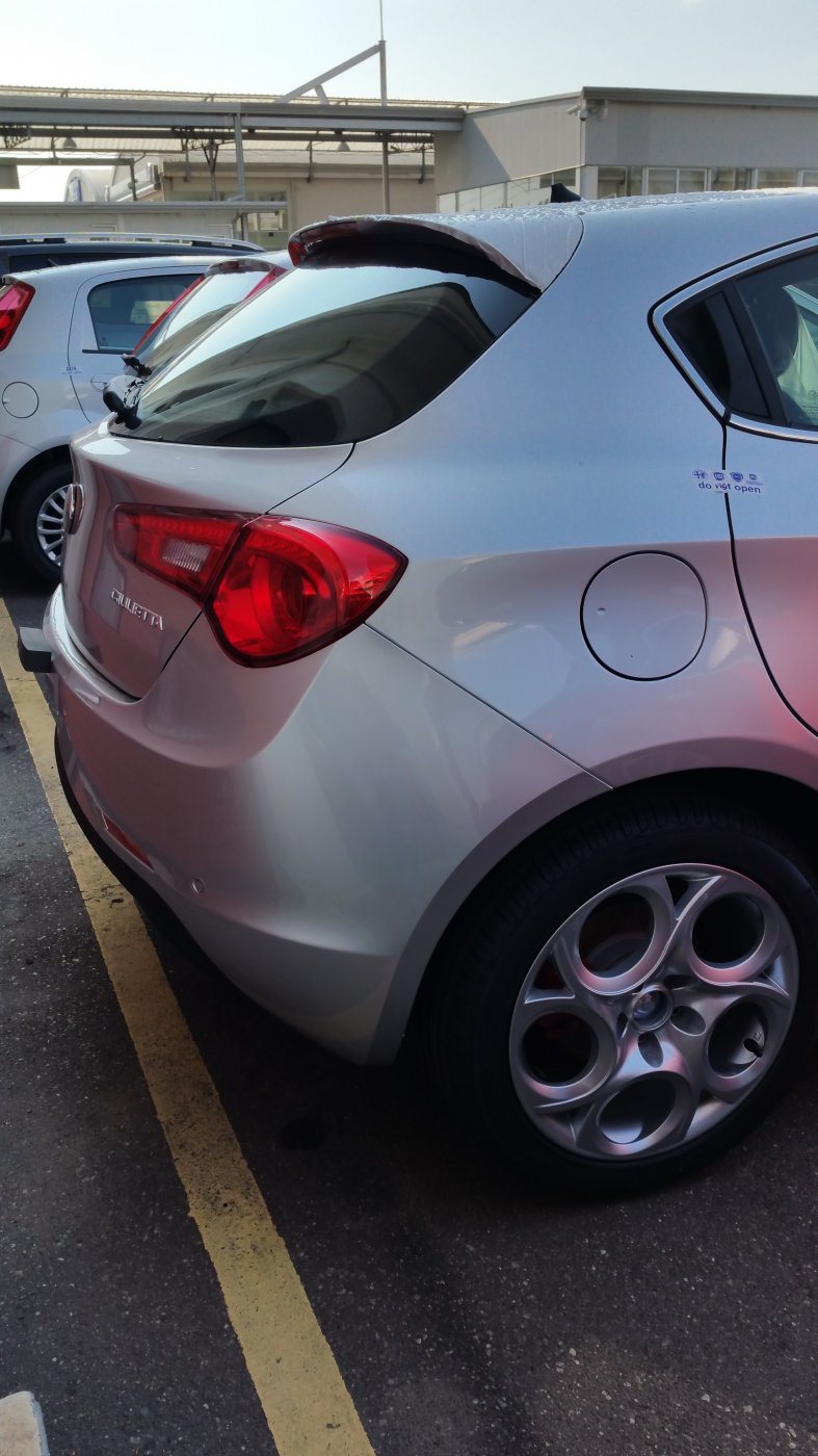 Nel piazzale ce n'erano parecchie, ma un grigio Silverstone con pinze Brembo rosse, cerchi a 5 fori da 17" e minigonne non è facile da vedere in giro spesso...e l'ho subito scovata infatti... ancora tutta impacchettata, celofanata, chiusa...è li che aspetta! Che bella che è !