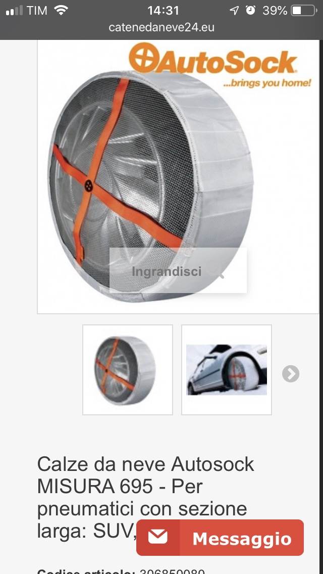 Grazie del consiglio!Anche io voglio montare delle invernali su cerchi di 18 in una sola misura per adesso ho preso delle calze dell’autosock, le avevo anche sulla 159 e su giaccone neve vanno benissimo e sono le uniche omologate in Italia ti metto una foto del modello per le 255 35 19 Visualizza allegato 178770