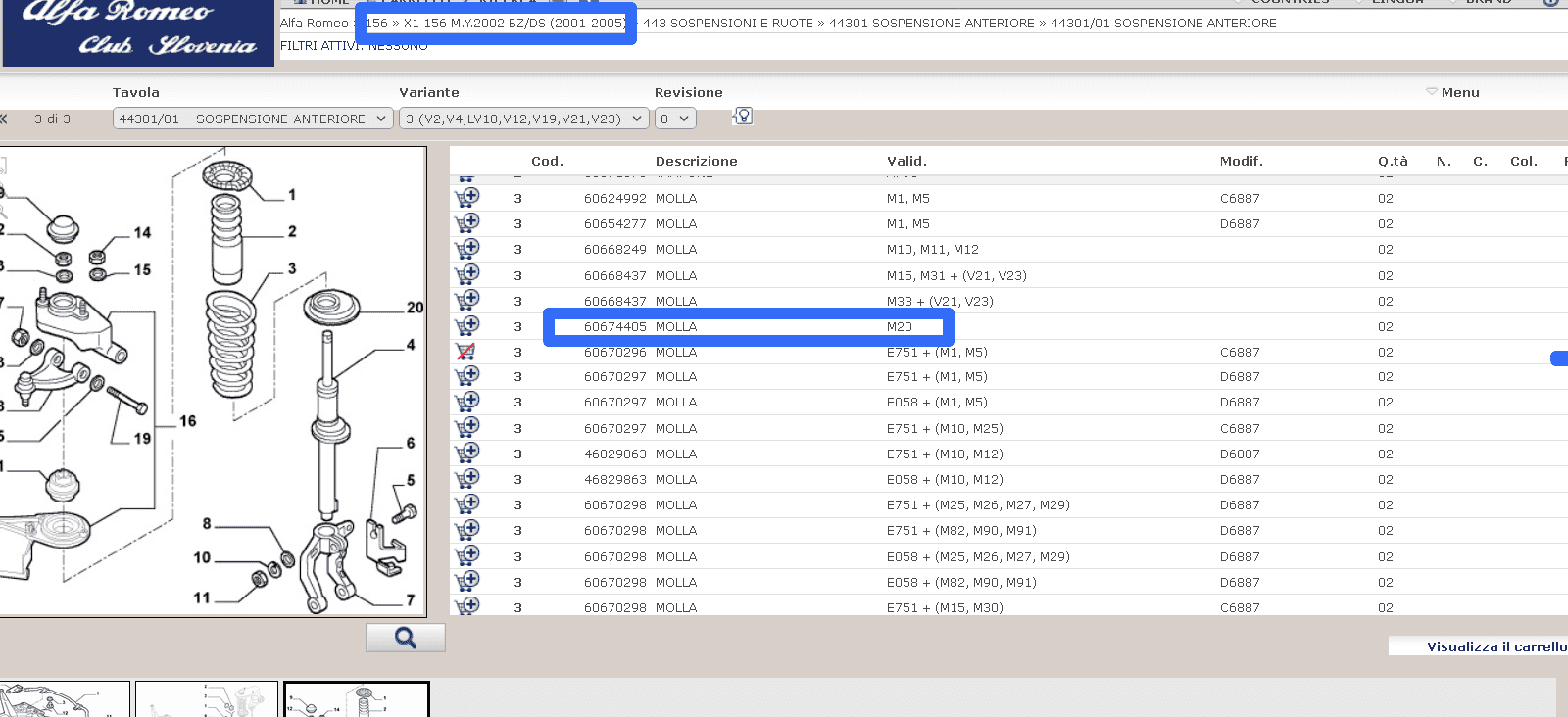 ( ogni motorizzazione ha molle di tipo e colore diverso in base al peso dell'auto