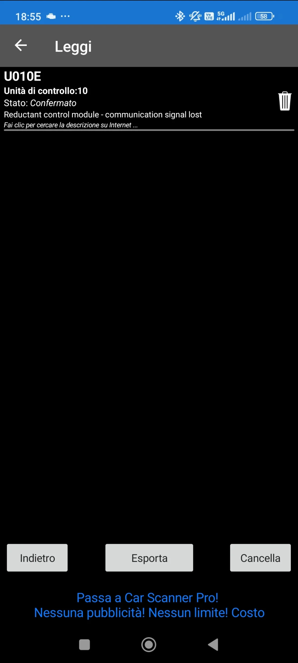 Questo guasto mi si presenta sempre in fase di accensione veicolo, mai con veicolo in movimento o già in moto, inoltre dall'acquisto ho già fatto 10mila km e un viaggio lungo, sempre azzerando l'errore, ma avendo fatto questo km credo di aver già consumato il liquido vecchio all'interno del serbatoio, dici lo stesso di fare questa prova e di svuotare completamente il serbatoio?