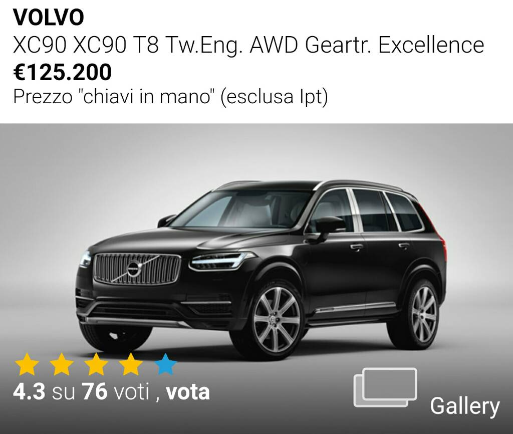 Scusa...Ma questo é il t8 con dual engine versione excellent...A parità di prezzo con Stelvio prendi un D5 diesel inscription.Non mi piace passare per uno che dici stronzate.