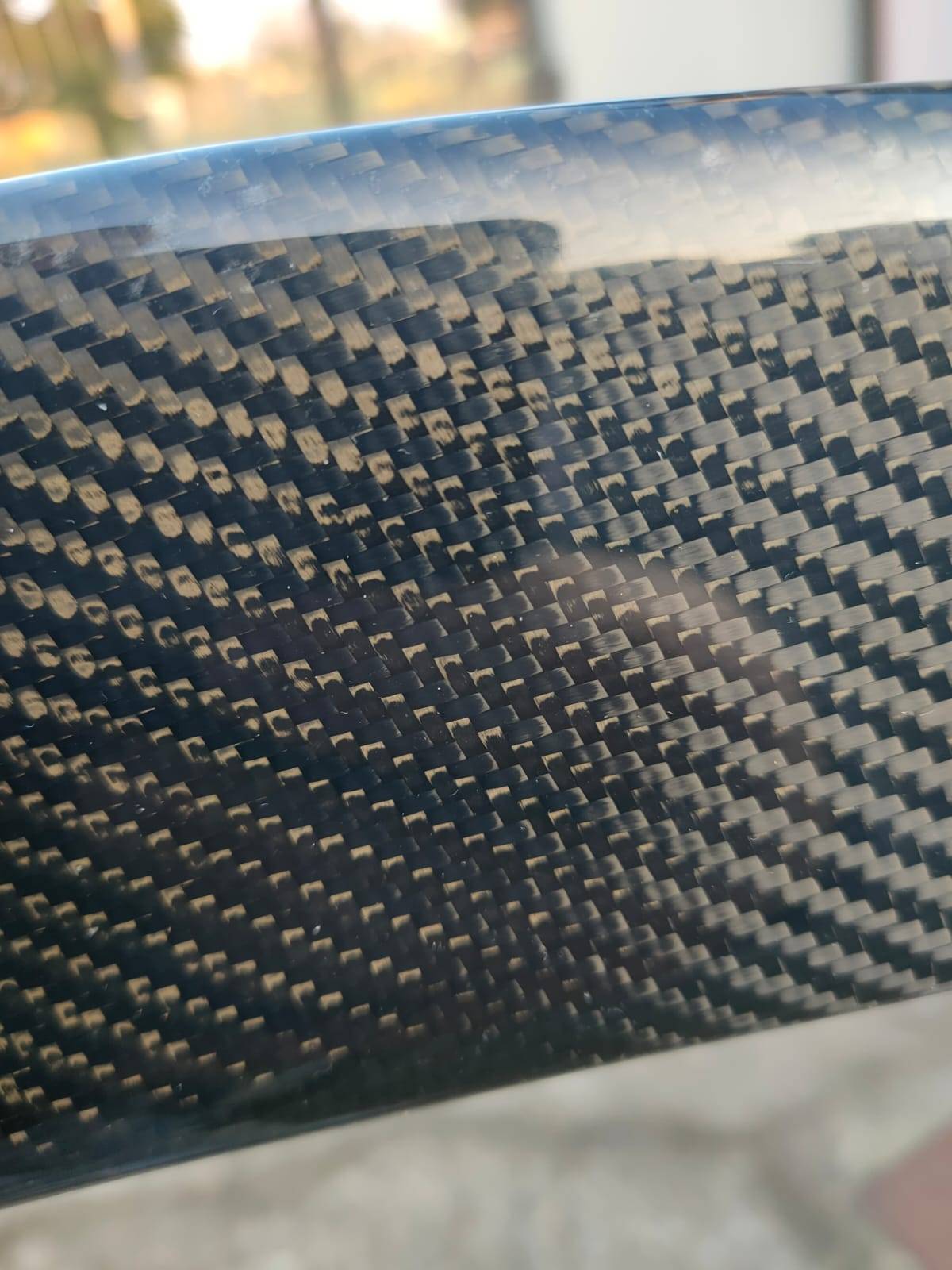 Intanto è vera fibra di carbonio e non è plastica cubicata (che detesto), il peso totale del pezzo sono 482g, aderisce perfettamente alle curve del portellone ed ha una eccellente finitura lucida.