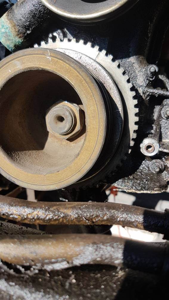si deve esserci,è stato progettato così per compensare le tolleranze di produzione senza danneggiarsi,ad ogni modo lo spinterogeno disallineato si spiega in due modi,o si applicato il sistema delle scintille asincrone o è stato regolato male,poichè il poco disassamento dal segno dell'asse a camme non provoca la grande differenza di posizione dei segni sul distributore,ad ogni modo anche quello sul basamento è in posizione sbagliata,in sostanza ruotando l'albero motore porta a far corrispondere ii segni sul distributore in testa ,verifichi che il piolino sia tra uno e due denti di distanza prima del segno sulla puleggia e poi porti il distributore del basamento ai segni,questo è a spanne,vedi cosa dice con precisione il manuale del motore ,poi nessuno ti vieta di fare dei segni per conto tuo,la correzione di accensione la fa la centrale,ma i distributori devono essere comunque portati in fase e devono essere allineati ai segni prima dell'allinamento dei segni di fase di distribuzione.