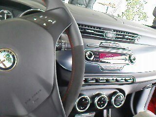 Sottopongo alla vostra attenzione una cosa che ho notato guardando alcune foto risalenti al lontano Marzo 2010, quando fui invitato alla presentazione in anteprima a porte chiuse della Giulietta. Notate il volante del pack sport com'era? Scusate la qualità delle foto! La capoccia nella prima foto è la mia