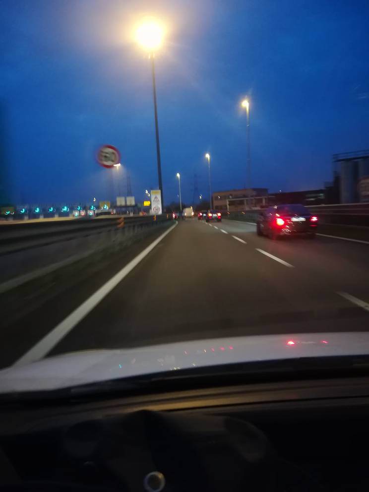 Roba che della linea tratteggiata centrale si riusciva a vedere solo un tratteggio per volta, i paracarri di lato coi catarifrangenti se ne vedeva solo 1 e quando era vicino.