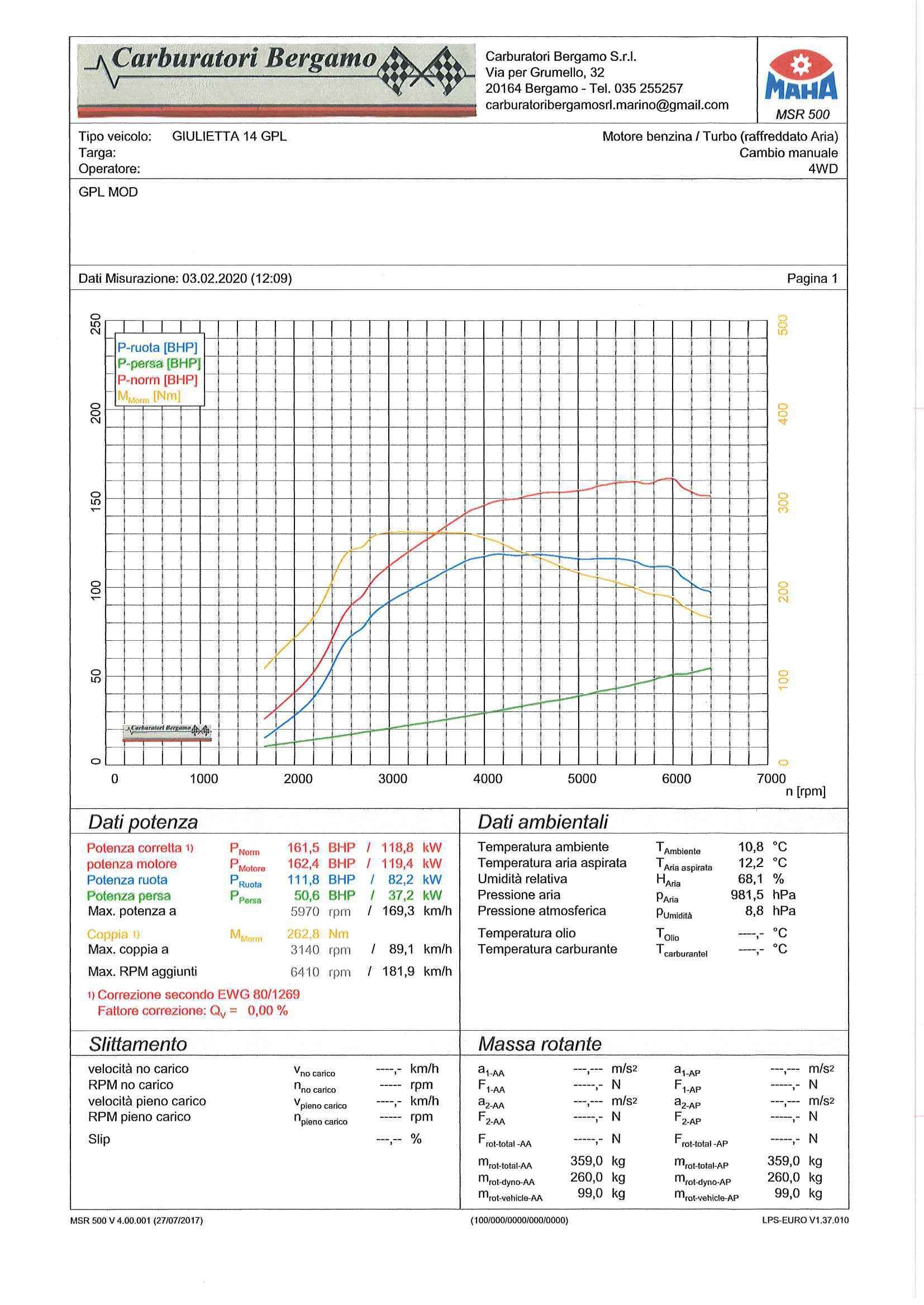 Ecco il risultato dopo la mappatura 160 cv e 260 Nm a GPL no male direi