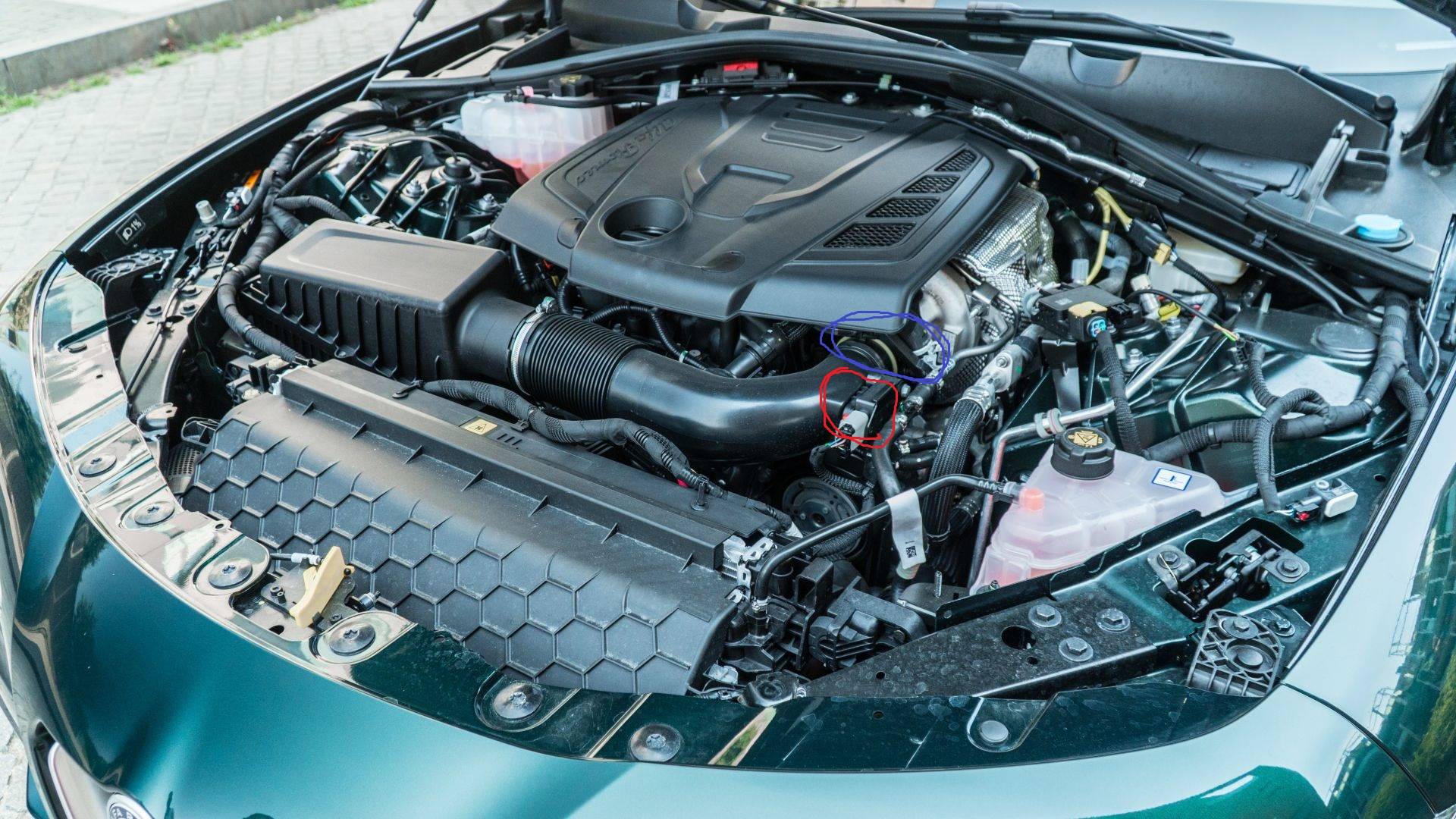 Il cerchio blu è il collettore da sganciare, il cerchio rosso è il sensore che ti darà l'anomalia..