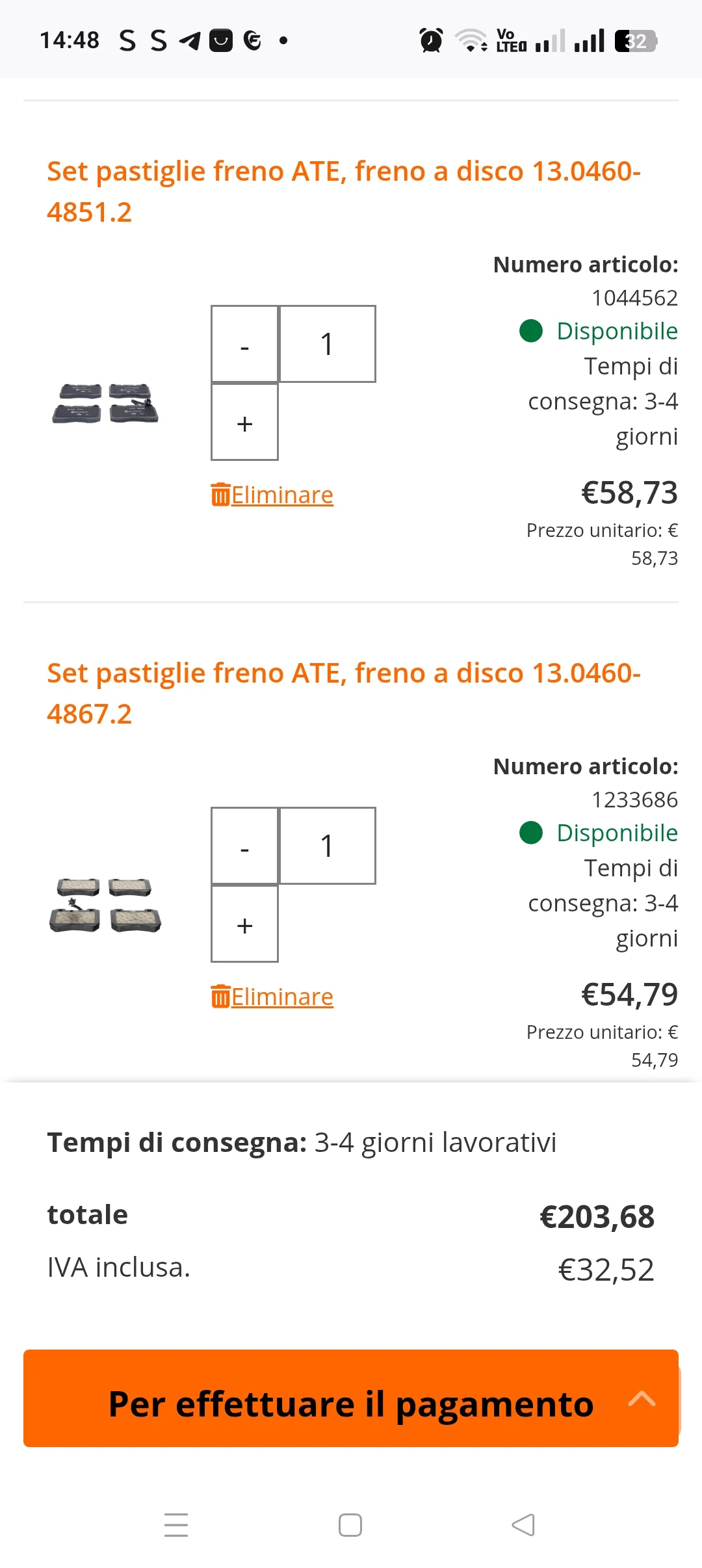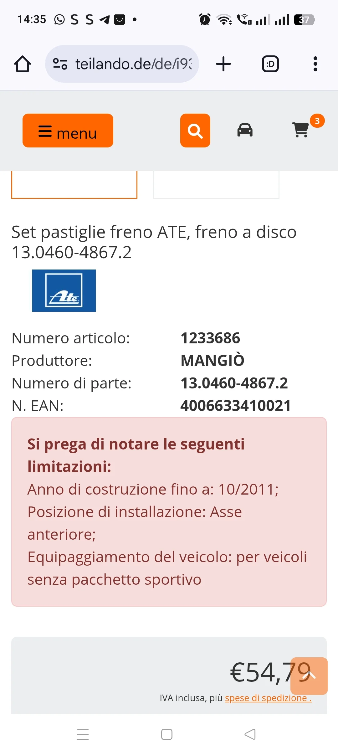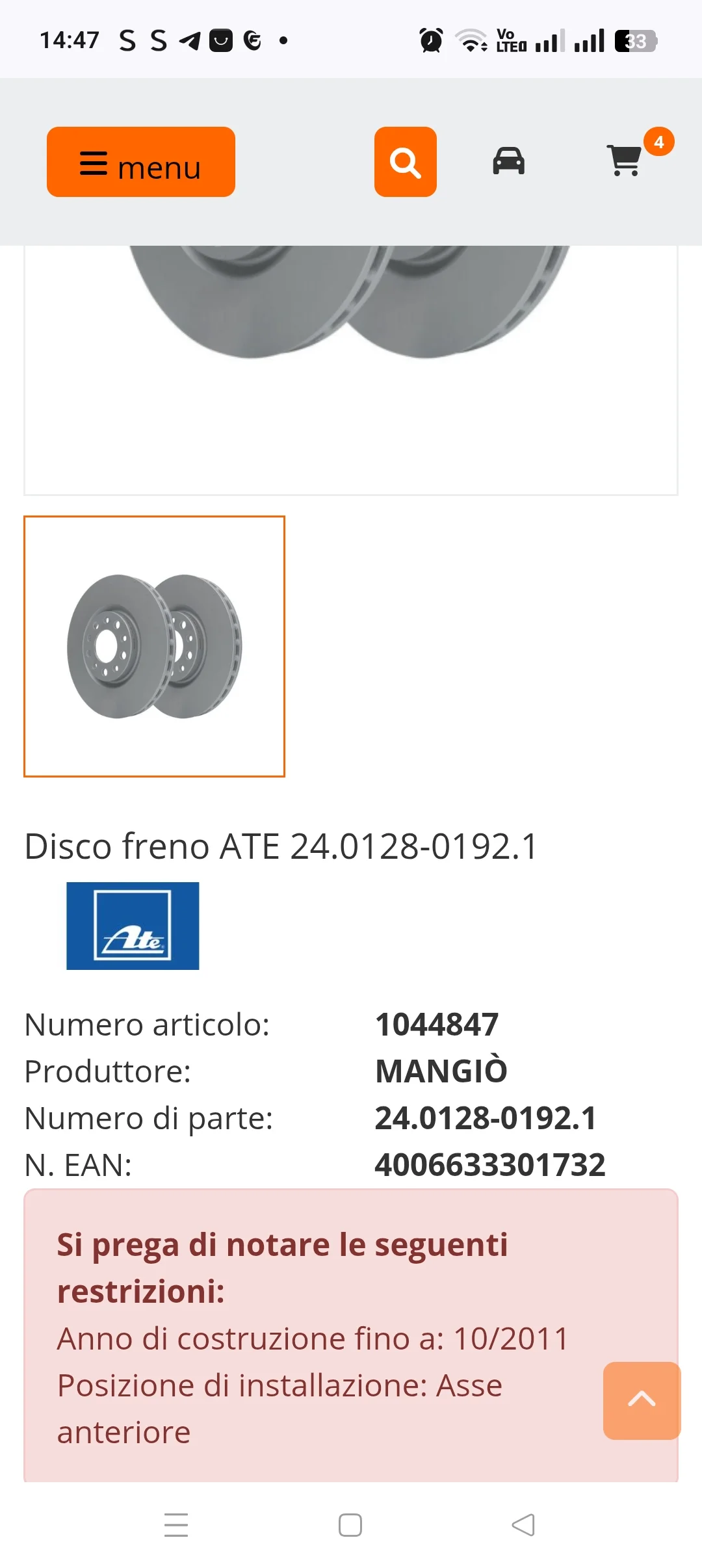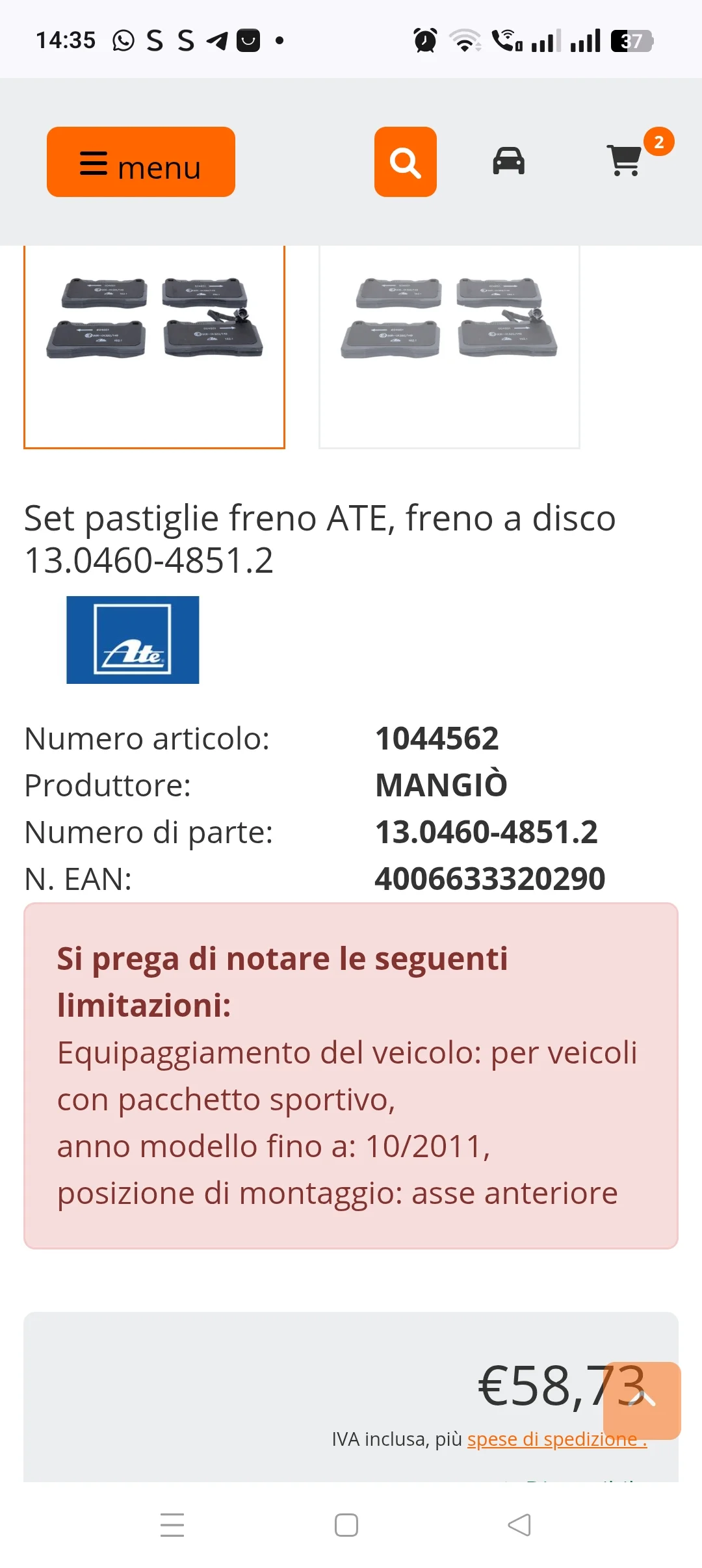 Devo cambiare i dischi e le pastiglie,il meccanico mi ha consigliato Ate, ho trovato su eBay una ditta tedesca ma non risponde alle email, poi ho trovato questo, però mi dà 2 sigle di pastiglie diverse, nn so perché,e le sigle sono diverse da quelle di eBay, quali prendo? E soprattutto sono buone quelle in ceramica?