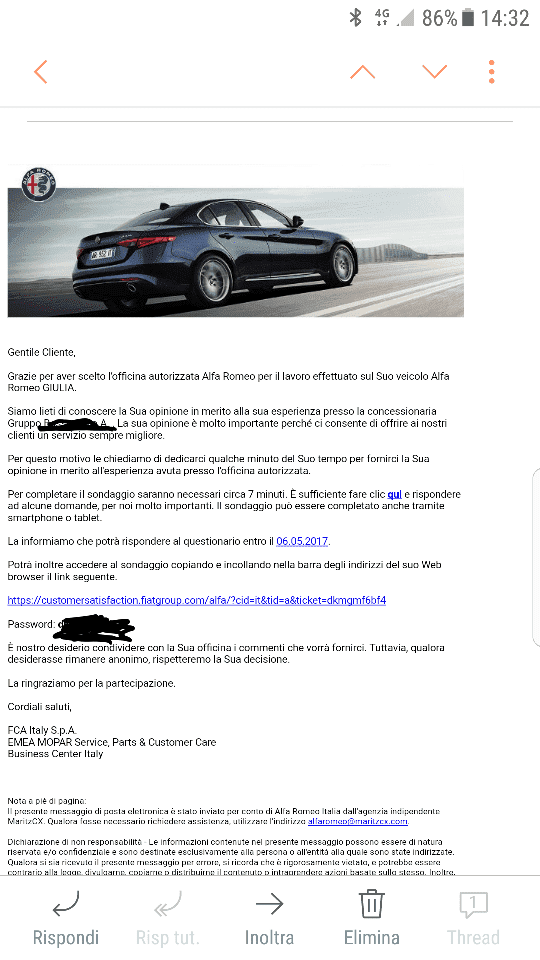 I venditori di entrambi le case mi hanno detto che mi sarebbe arrivato un questionario e si sono raccomandati di dare sempre il Max voto, altrimenti sarebbero stati convocati in direzione per capire cosa era successo e taglio di una parte della provvigione.