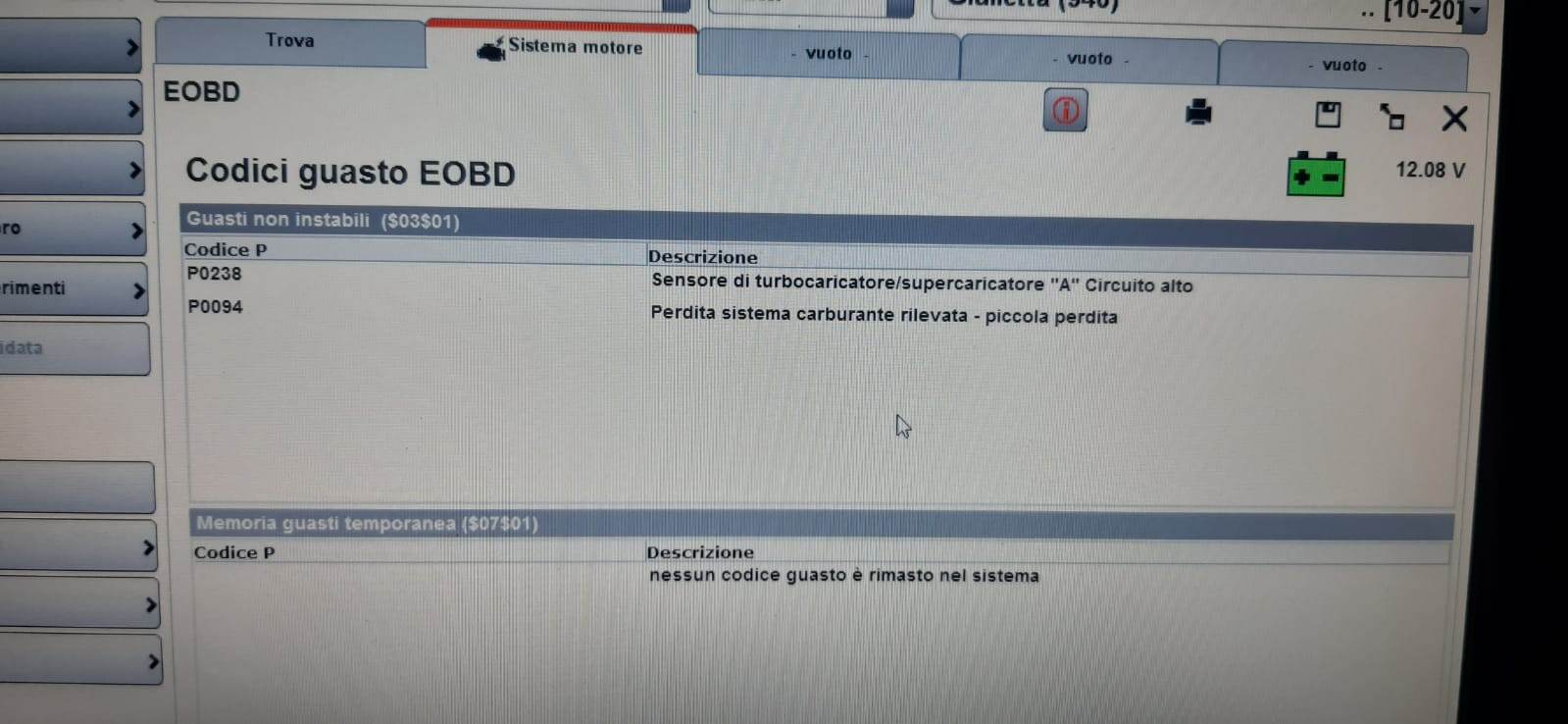 Ci sto sbattendo la testa da molto. Cambiato sensore pressione turbo (sul collettore aspirazione) elettrovalvola di comando turbo. Tubicini. Ho sostituito il manicotto sotto la turbina xké era rotto. Ma ancora mi esce questo maledetto errore.